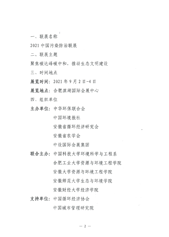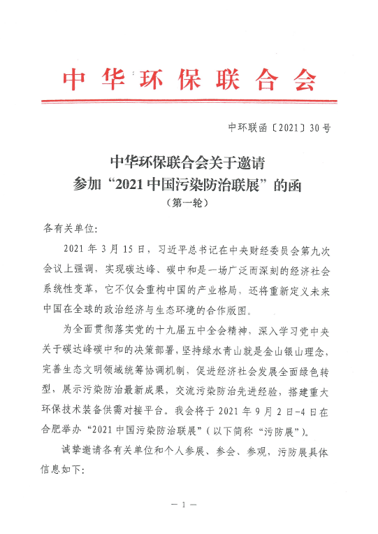 关于邀请参加“2021中国污染防治联展”的函(第一轮)