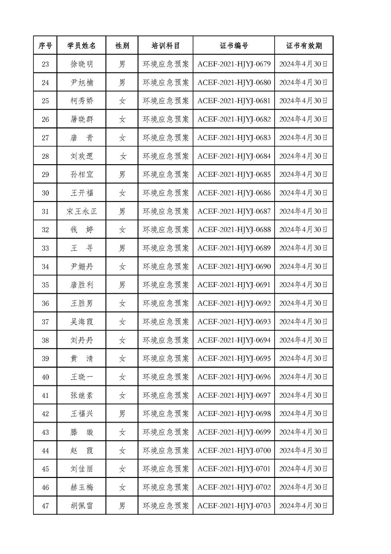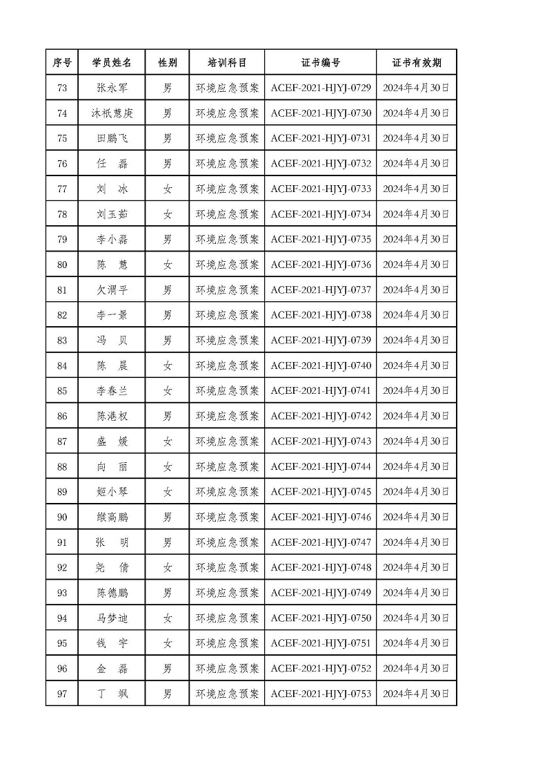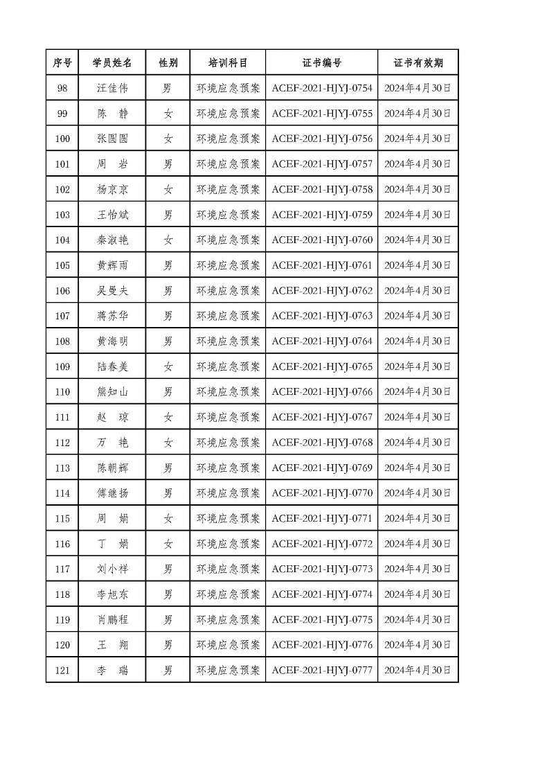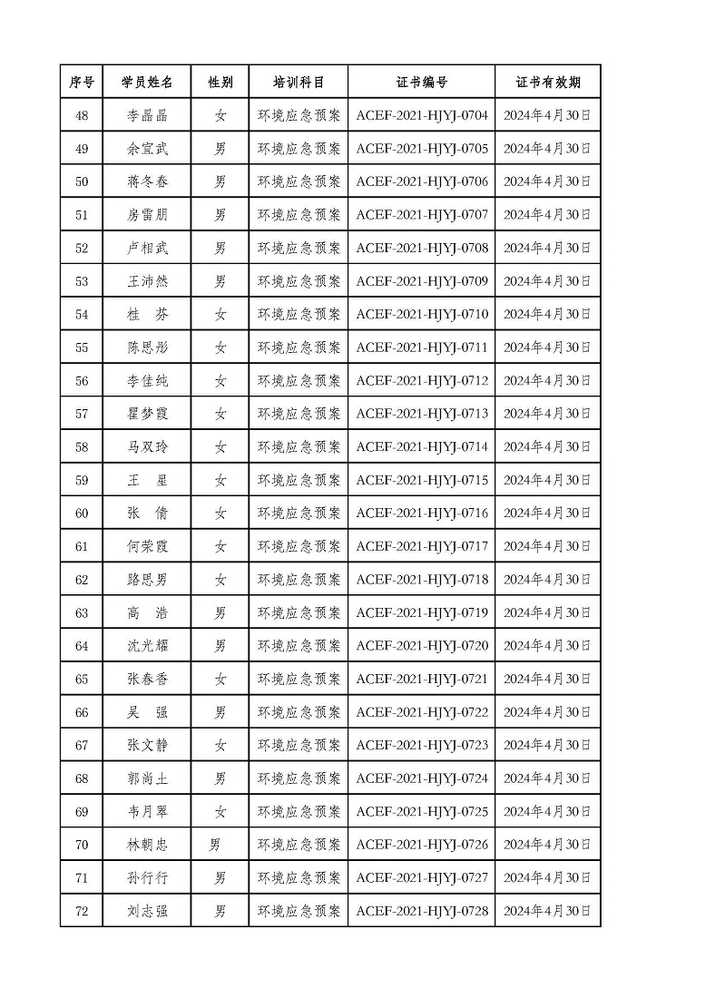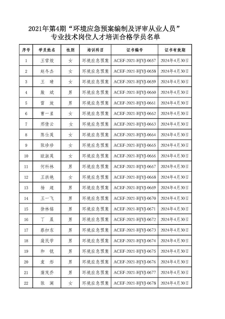 2021年第4期“环境应急预案编制及评审从业人员”专业技术岗位人才培训合格学员公示