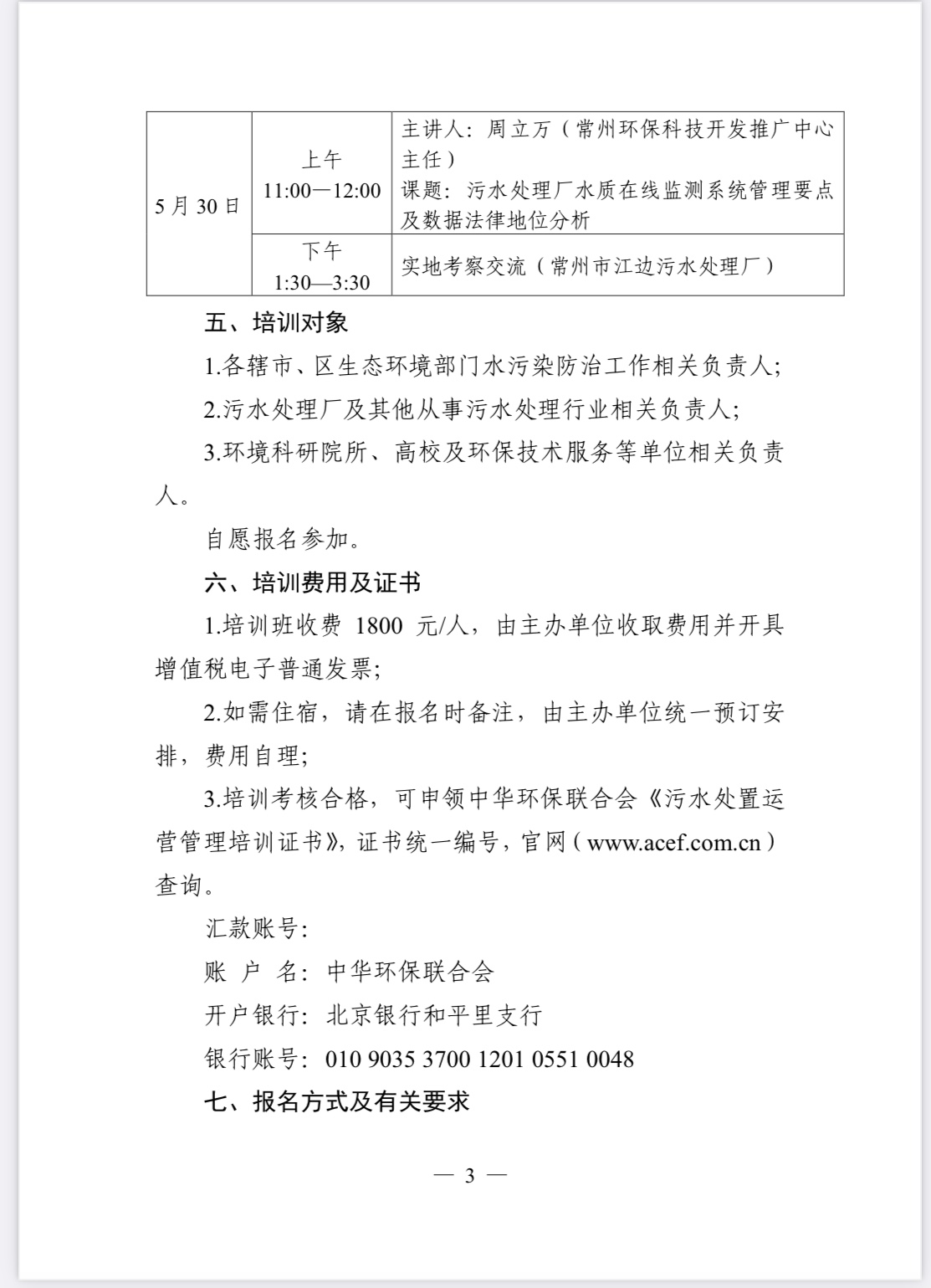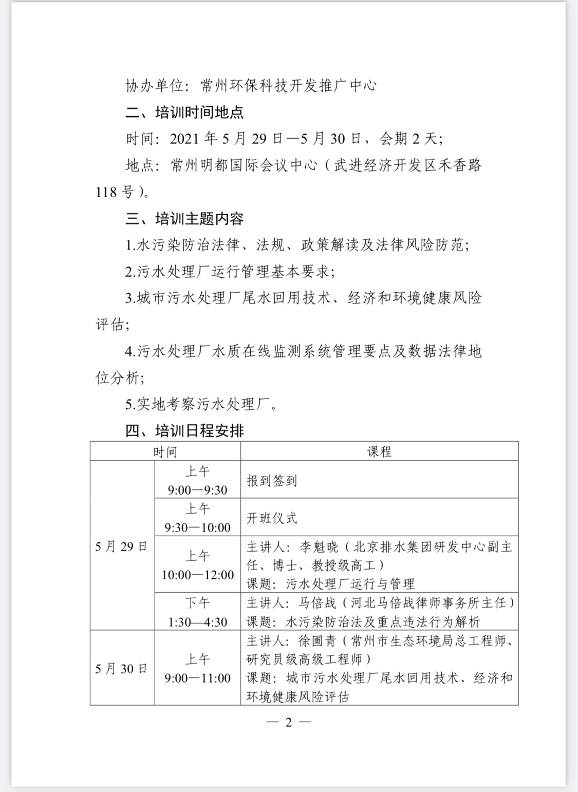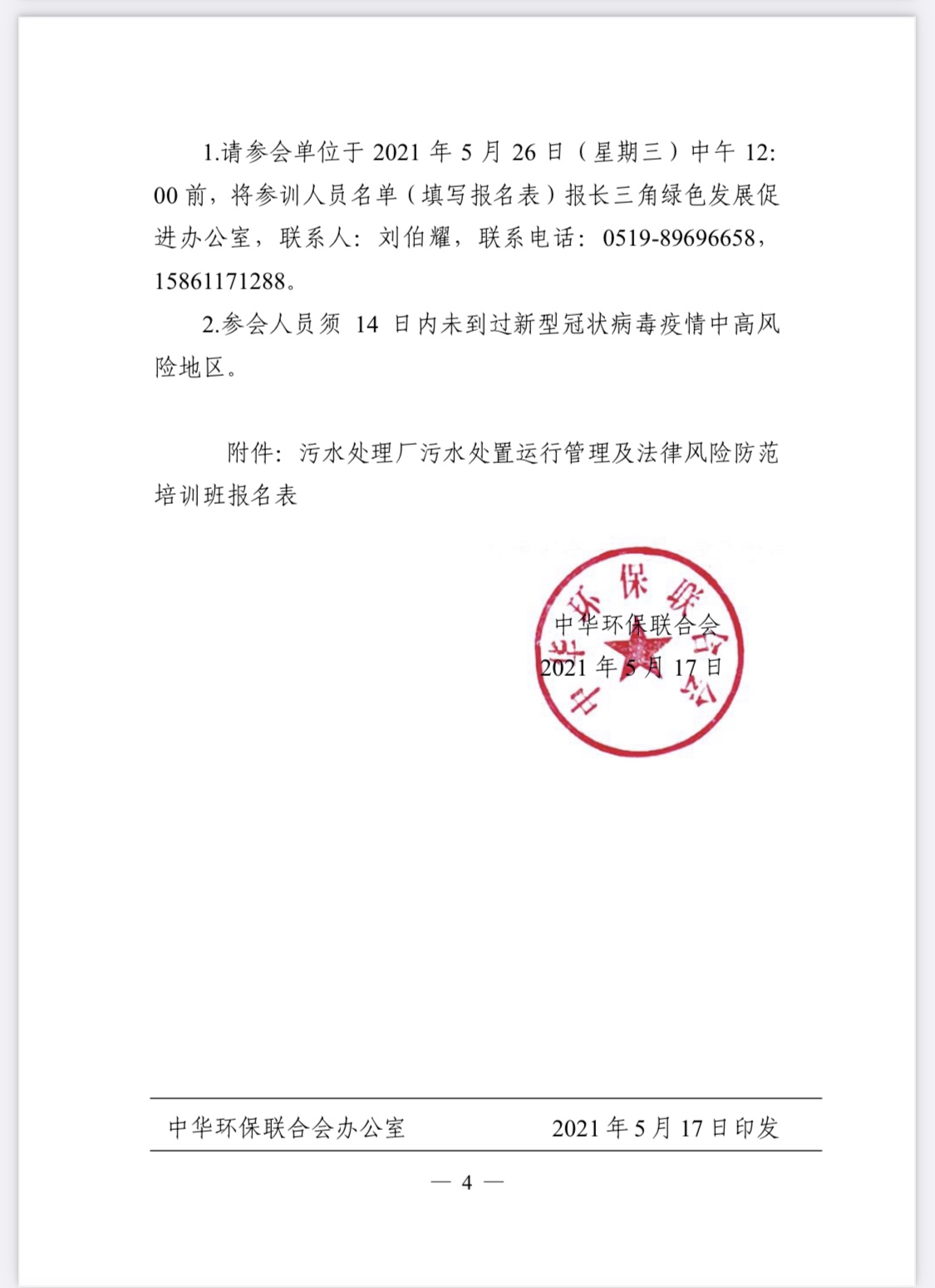 关于举办 污水处理厂运行管理及法律风险防范培训班的通知