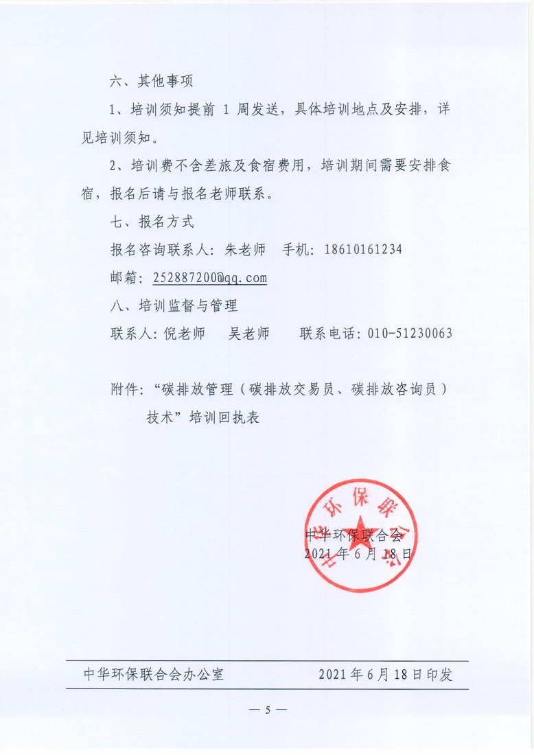 关于举办2021年第5期“碳排放管理(碳排放交易员、碳排放咨询员)技术培训班”的通知