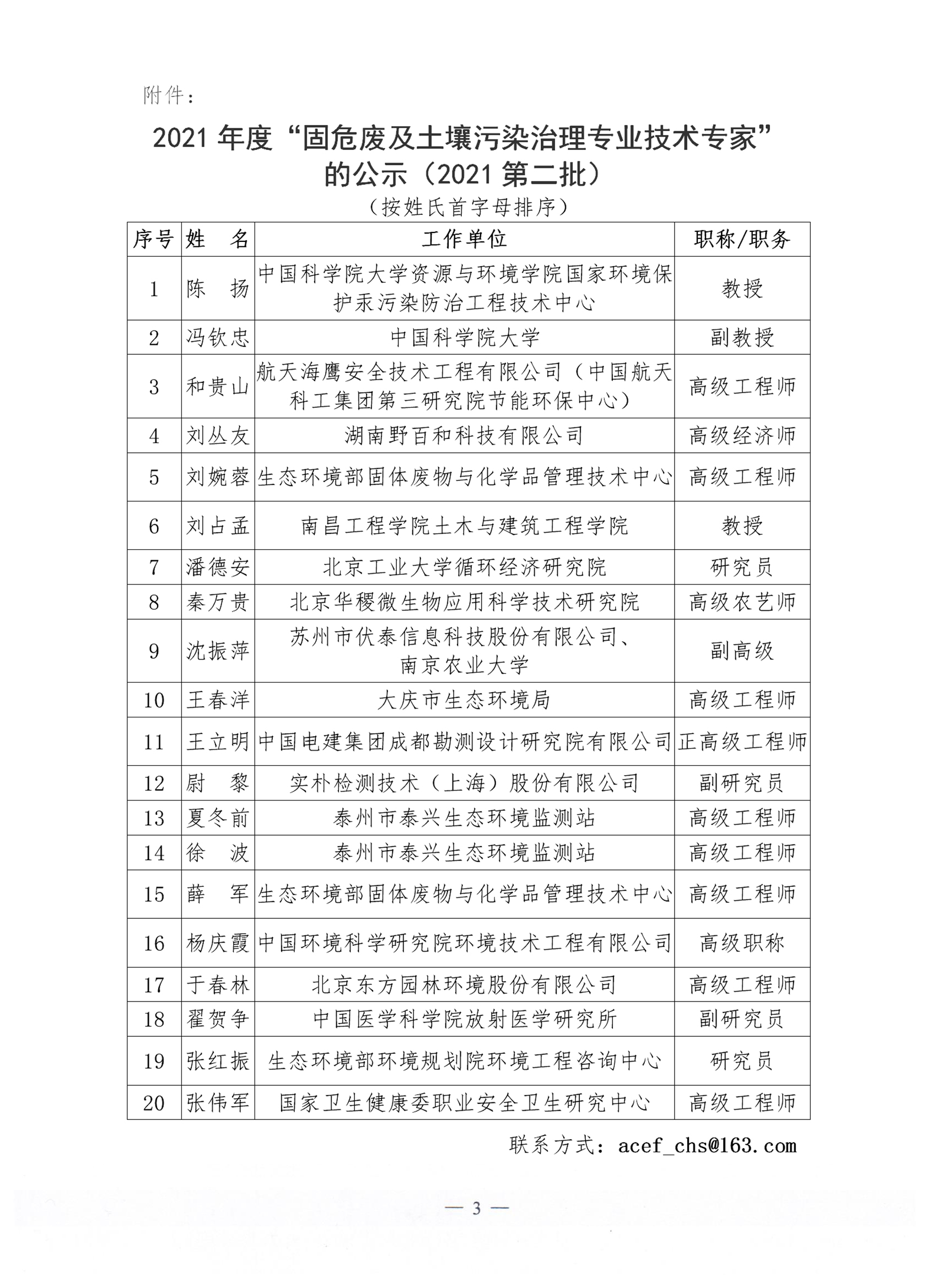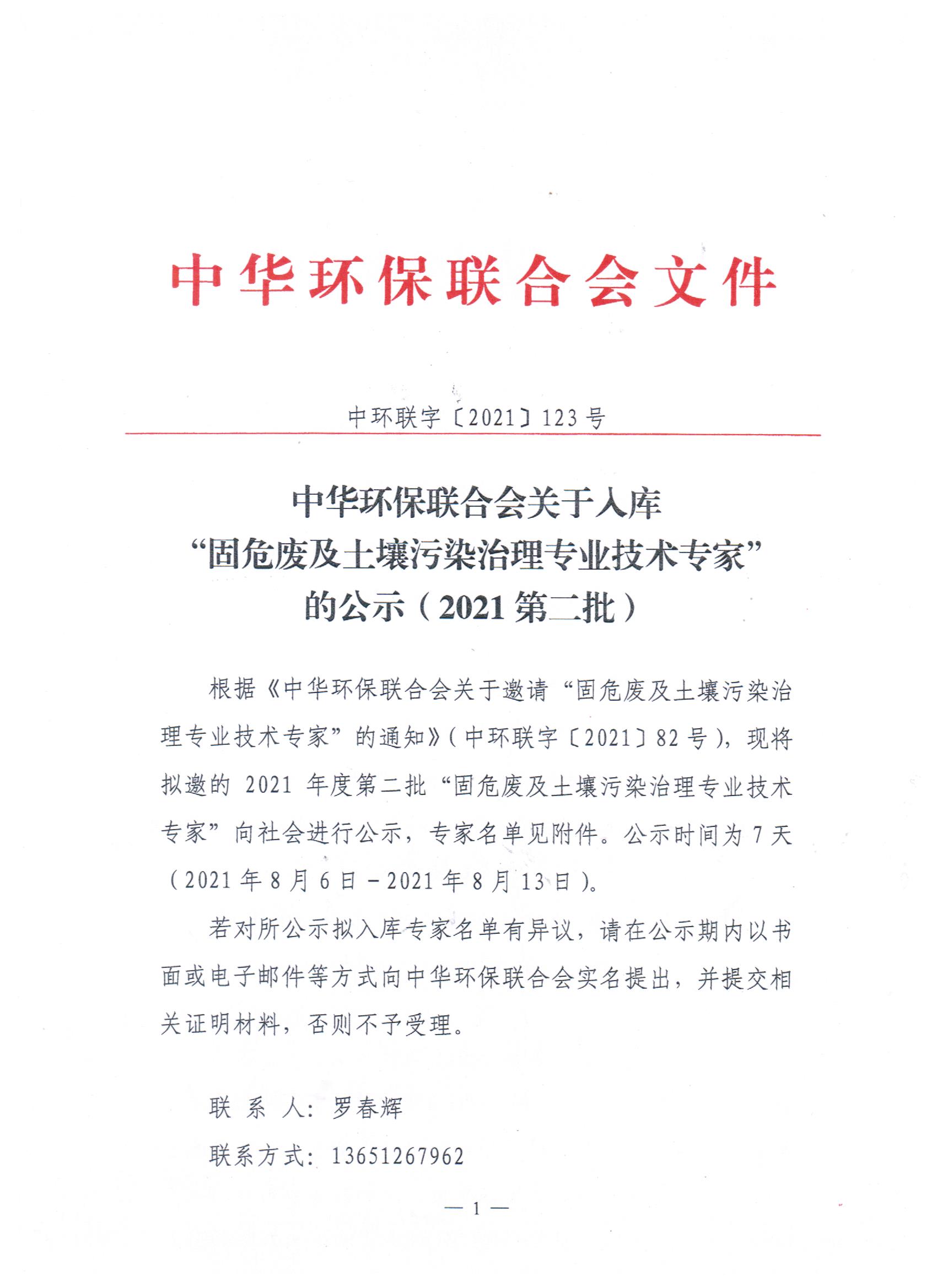 关于入库“固危废及土壤污染治理专业技术专家”的公示(2021第二批)