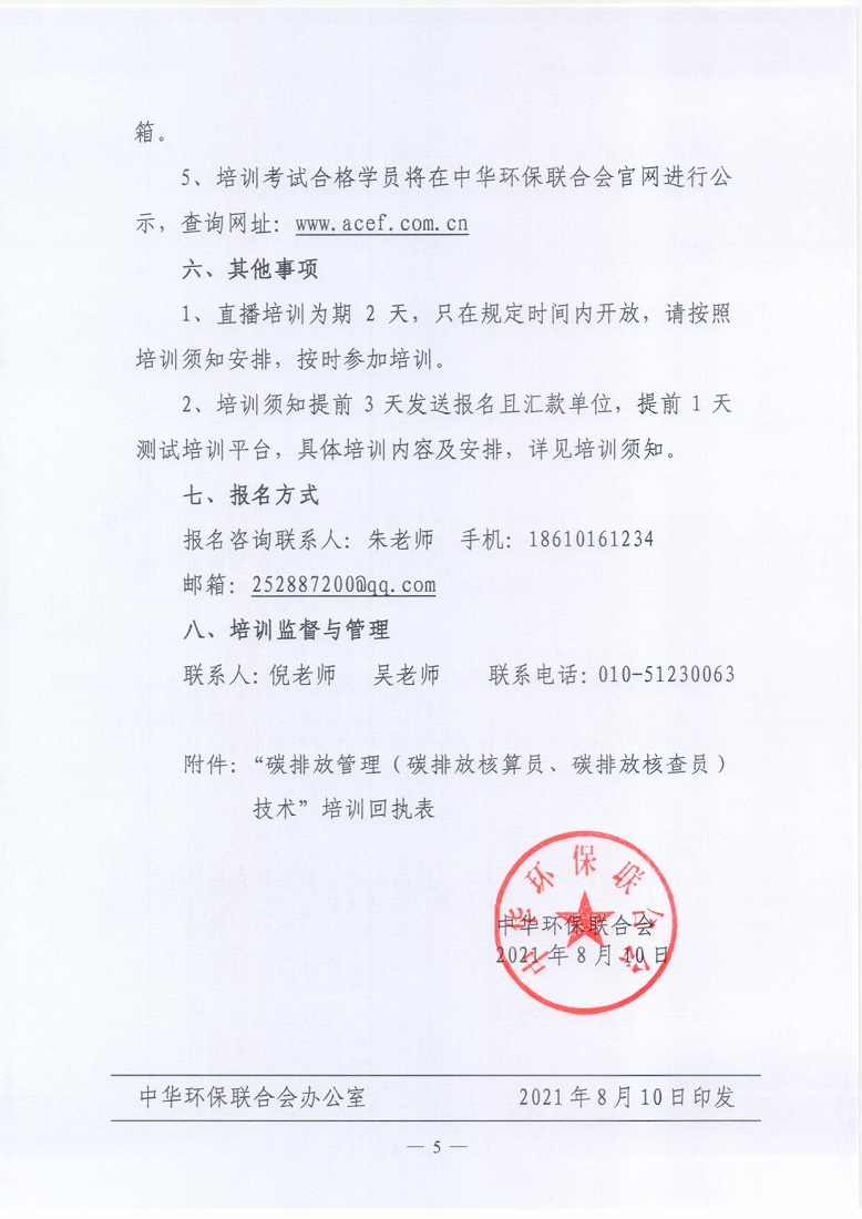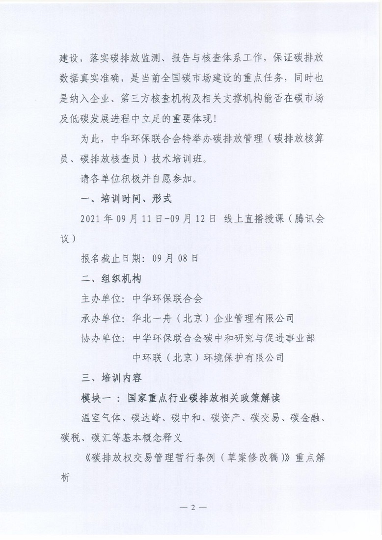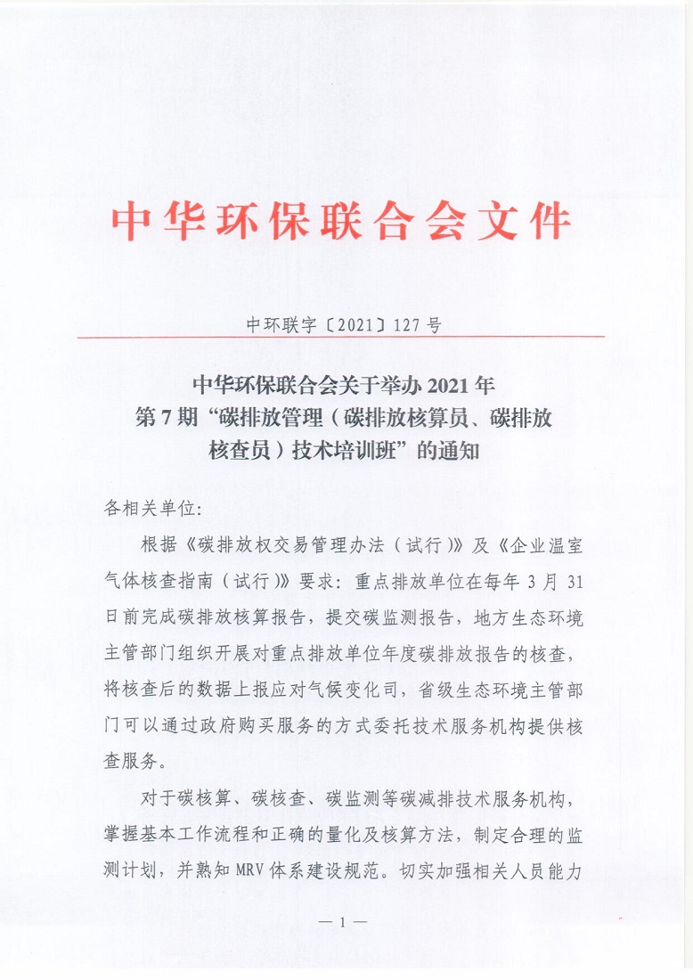 关于举办2021年第7期“碳排放管理(碳排放核算员、碳排放核查员)技术培训班”的通知