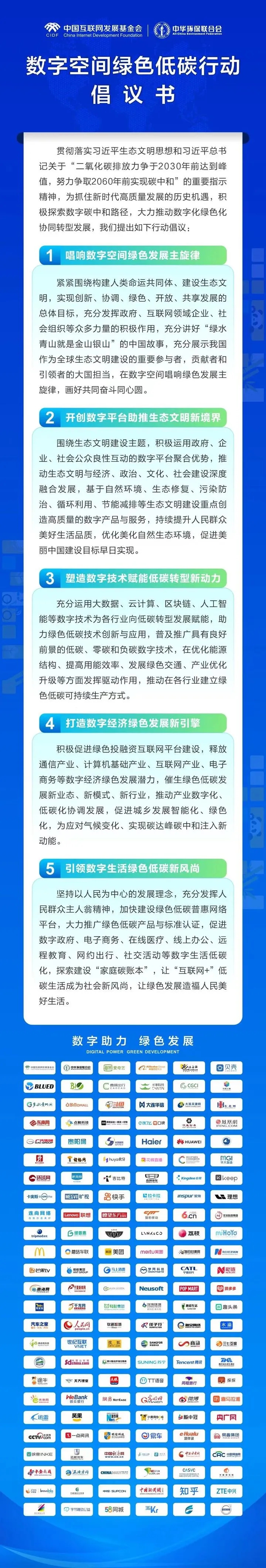 9月7日,首届中国数字碳中和高峰论坛在成都举行。为了积极探索数字碳中和路径,大力推动数字化绿色化协同转型发展,在数字空间发起绿色低碳行动,中国互联网发展基金会与中华环保联合会联合百家机构、企业、媒体在论坛上联合发布《数字空间绿色低碳行动倡议书》。
