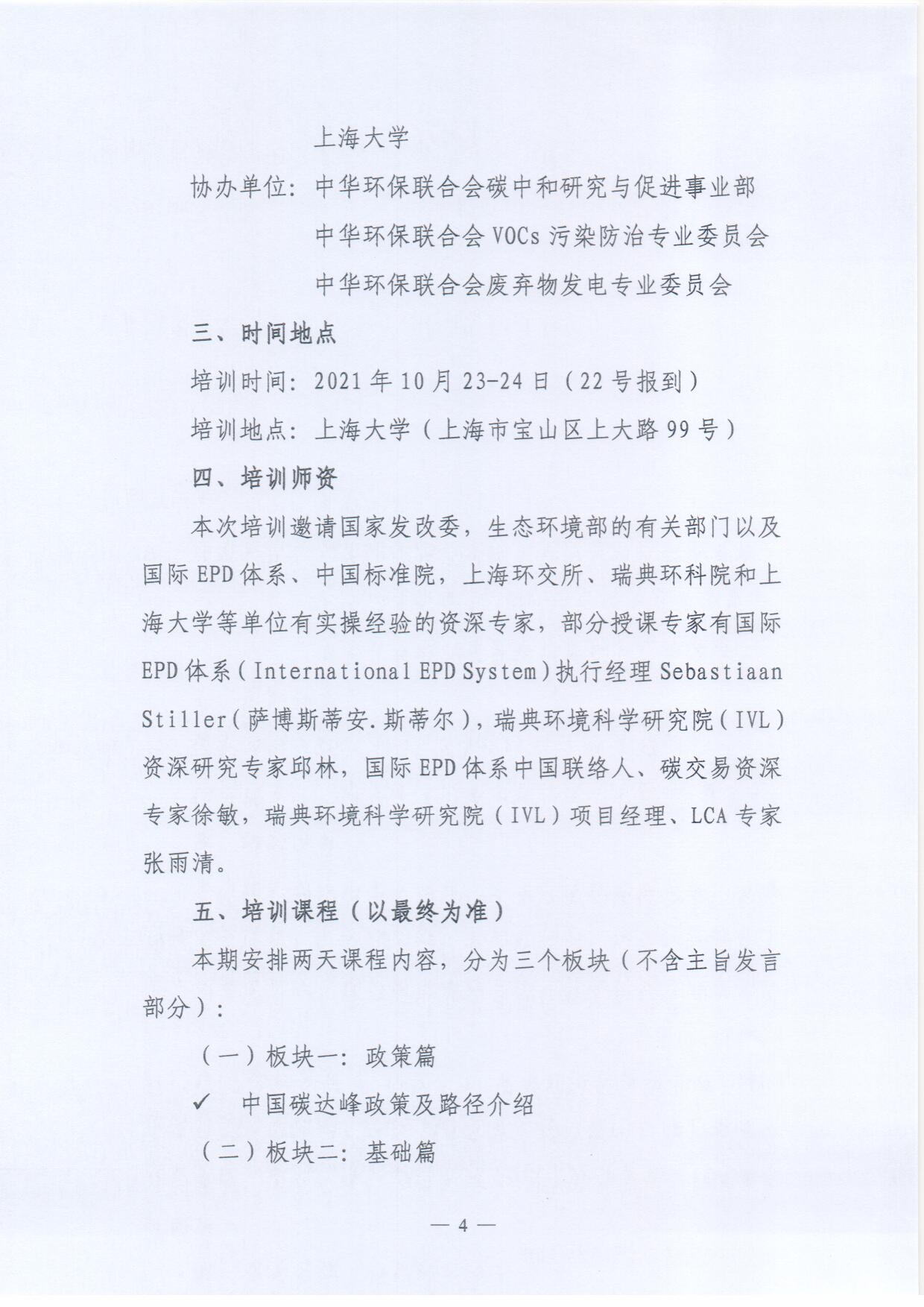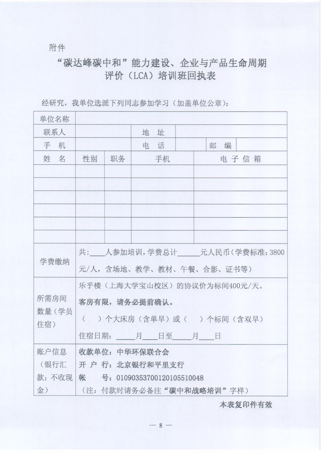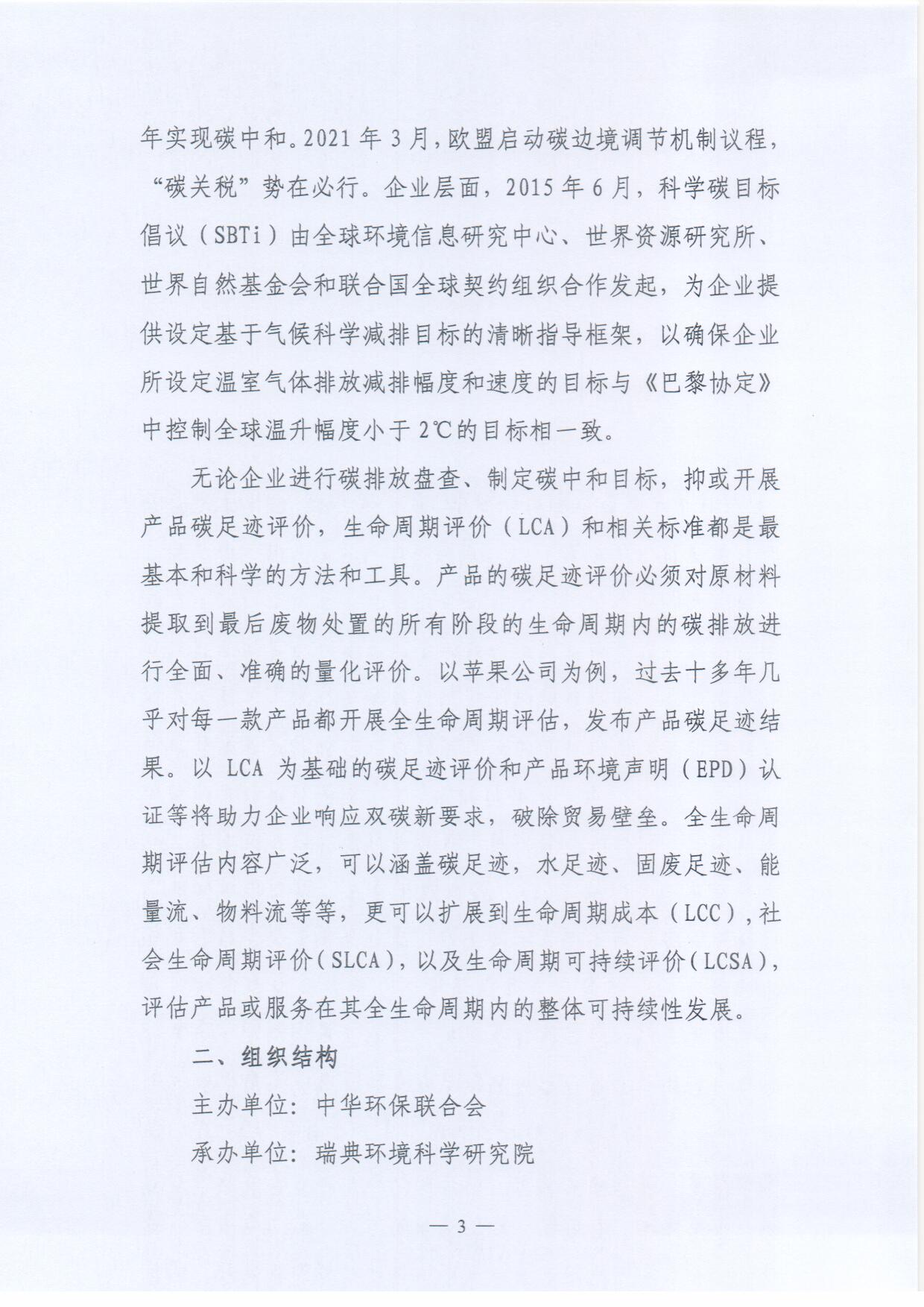 关于举办“碳达峰碳中和”能力建设、企业与产品生命周期评价(LCA)培训班的通知