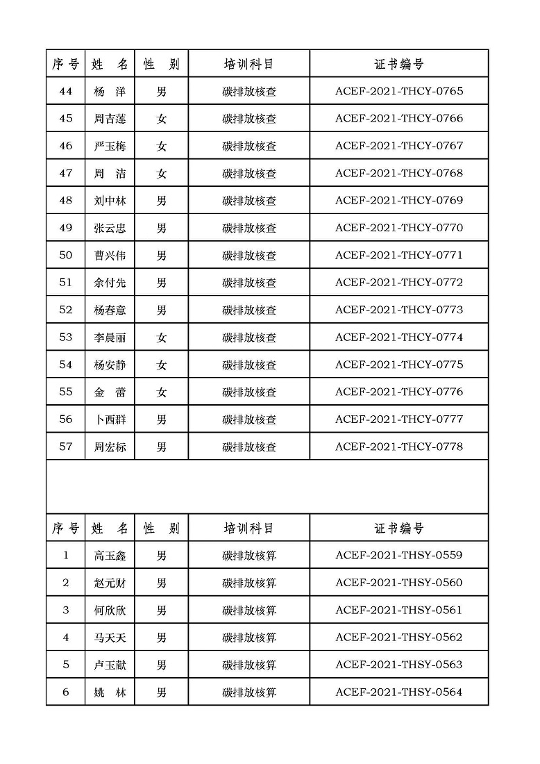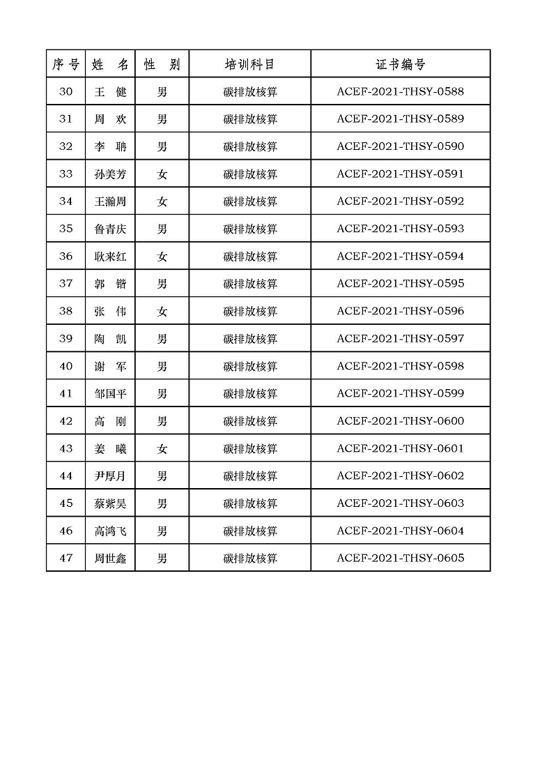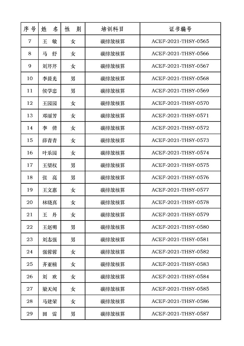 2021年第7期“碳排放管理(碳排放核算员、碳排放核查员)技术培训班”合格学员公示