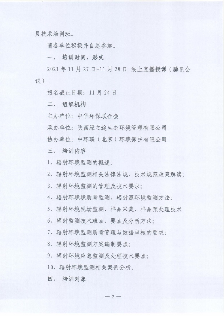 关于举办2021年第3期“全国辐射环境监测从业人员技术培训班”的通知