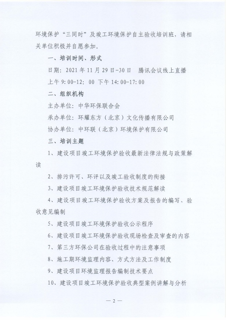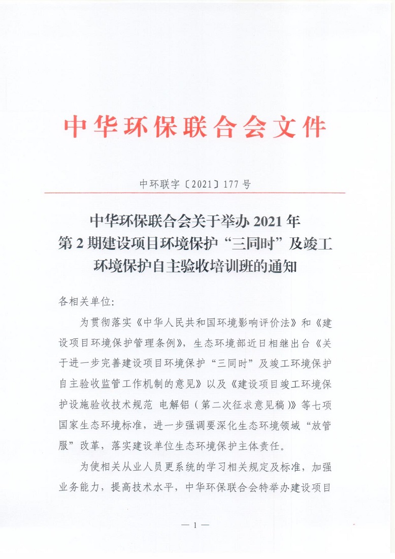 关于举办2021年第2期 建设项目环境保护“三同时”及竣工环境保护自主验收培训班的通知