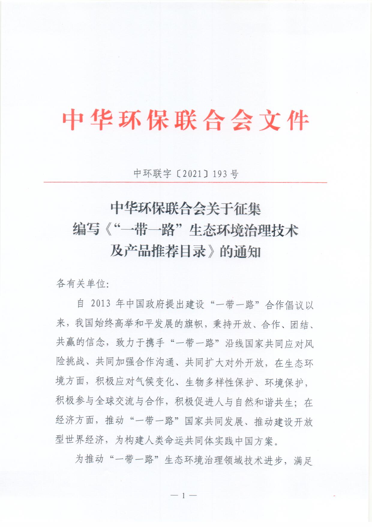 关于征集编写《“一带一路”生态环境治理技术 及产品推荐目录》的通知