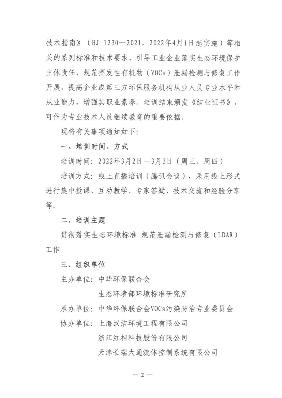 关于举办2022年度第一期泄漏检测与修复(LDAR)从业人员培训班的通知