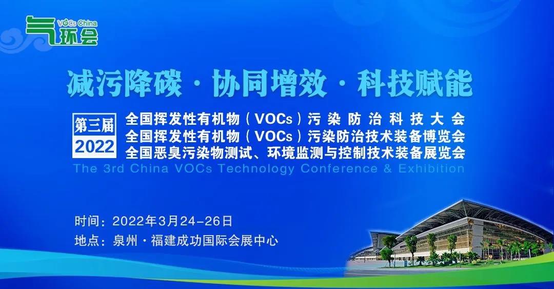 日前,记者从中华环保联合会获悉,2021年受疫情影响而推迟举办的第三届全国挥发性有机物(VOCs)污染防治科技大会暨全国挥发性有机物(VOCs)污染防治技术装备博览会,全国恶臭污染物测试、环境监测与控制技术装备展览会以及同期系列活动(以下简称VOCs China大会展览),定于2022年3月24-26日在福建泉州(福建成功国际会展中心)举办。