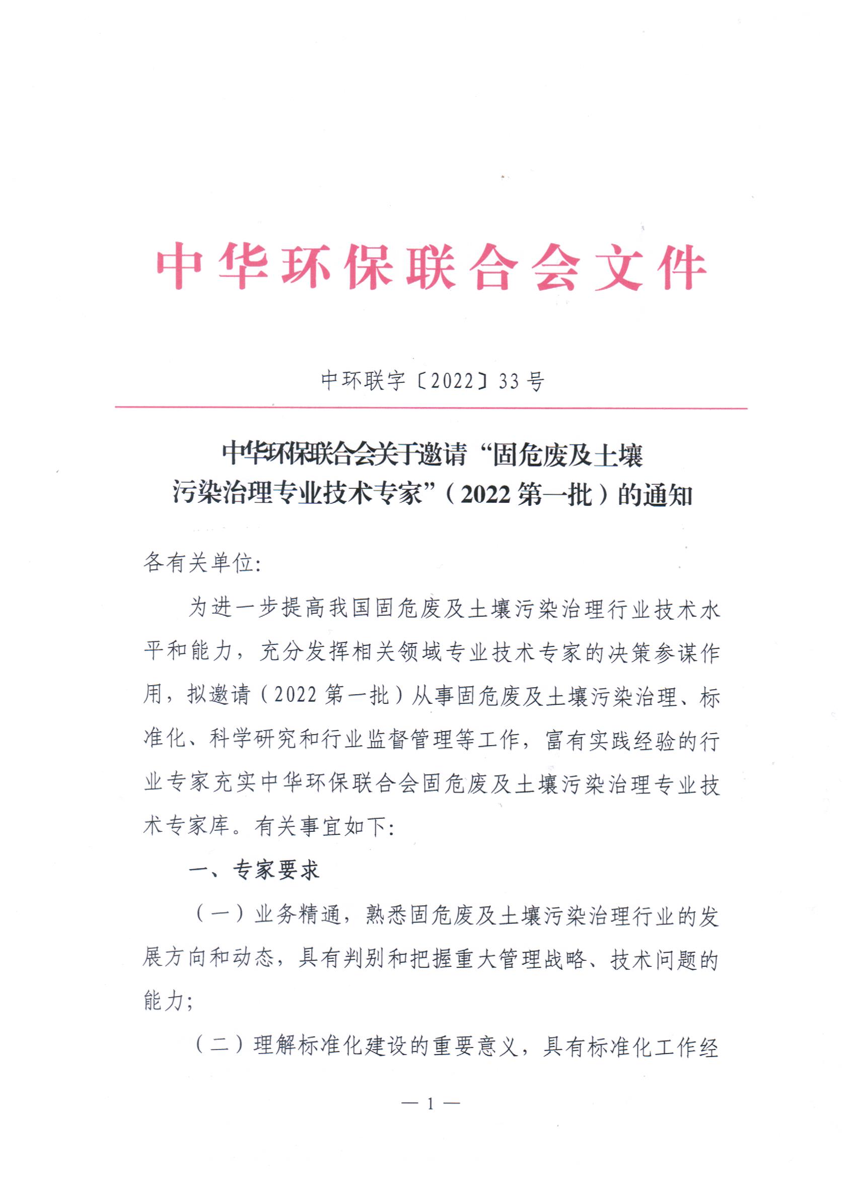 关于邀请“固危废及土壤污染治理专业技术专家”(2022第一批)的通知