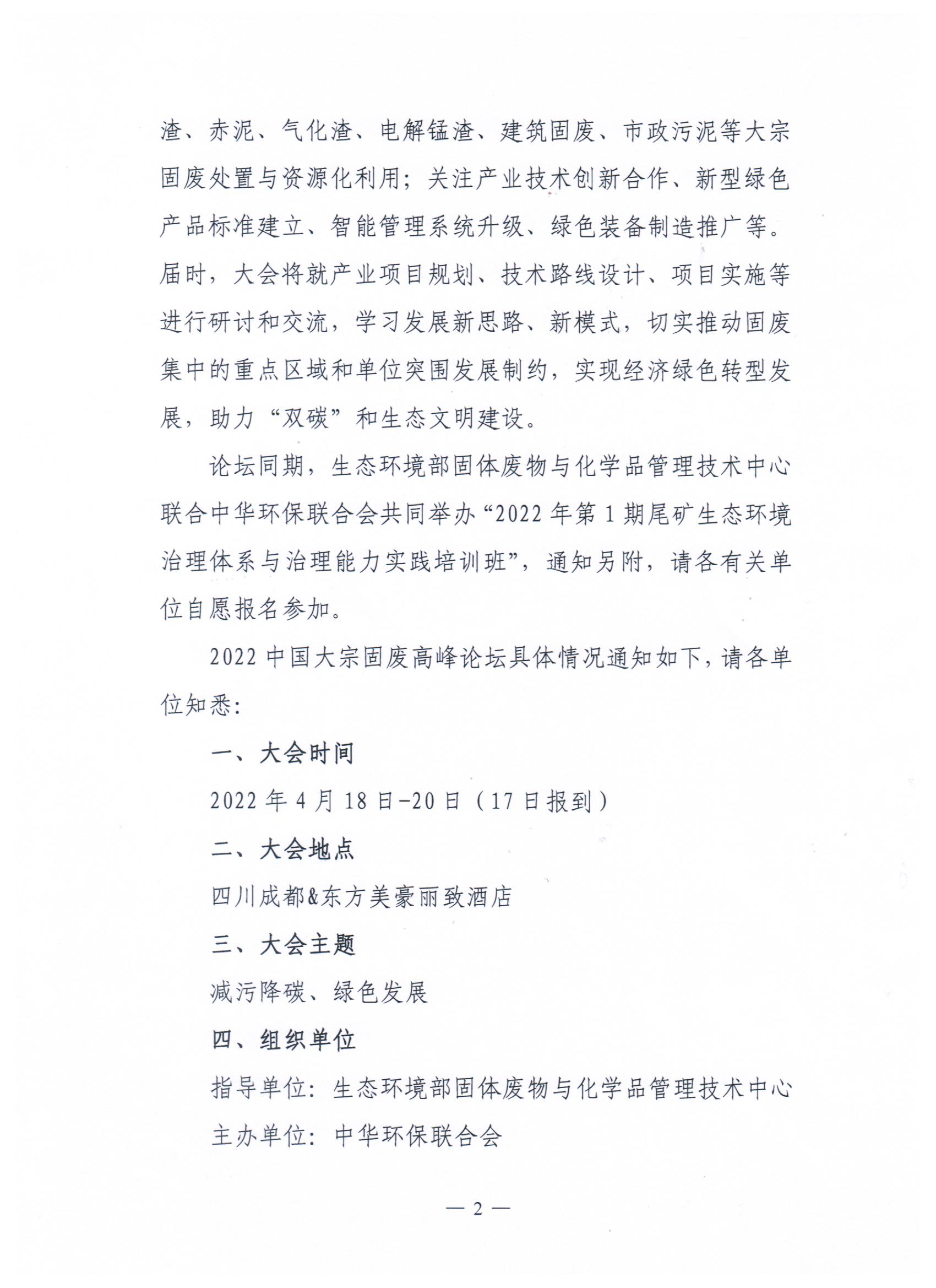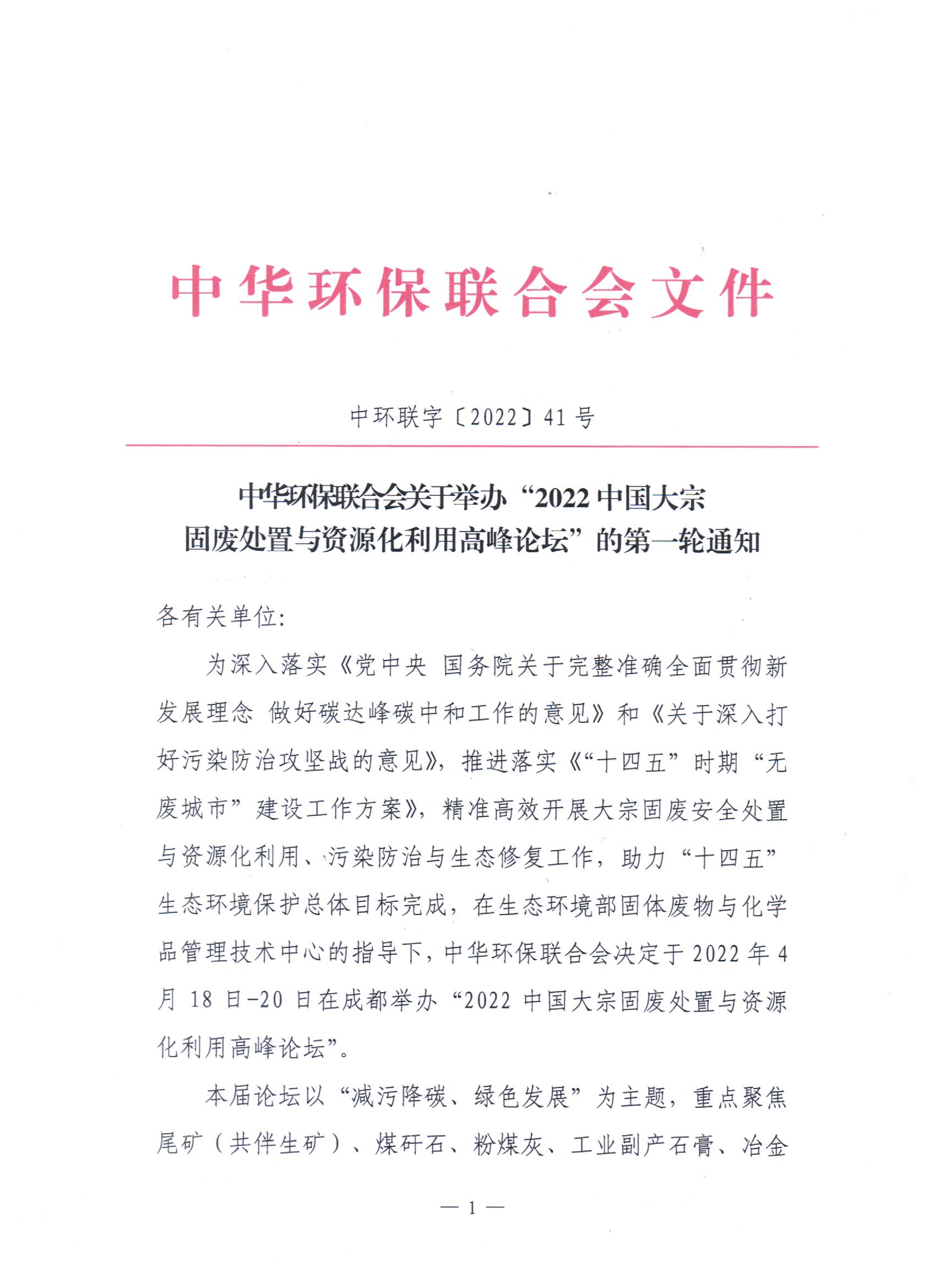 关于举办“2022中国大宗固废处置与资源化利用高峰论坛”的第一轮通知