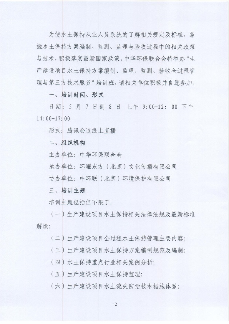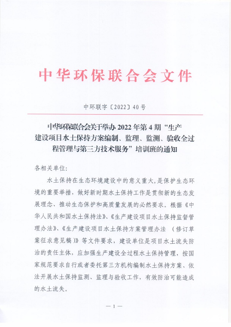 关于举办2022年第4期“生产建设项目水土保持方案编制、监理、监测、验收全过程管理与第三方技术服务”培训班的通知