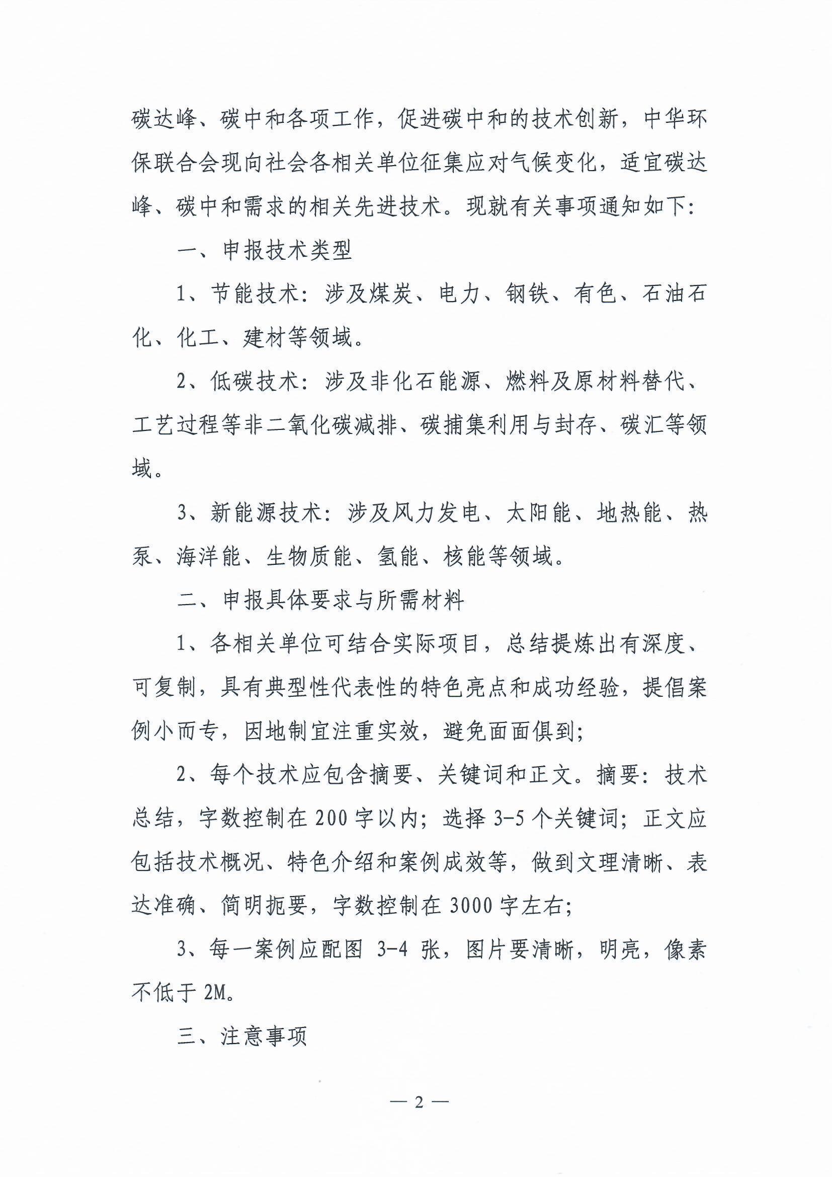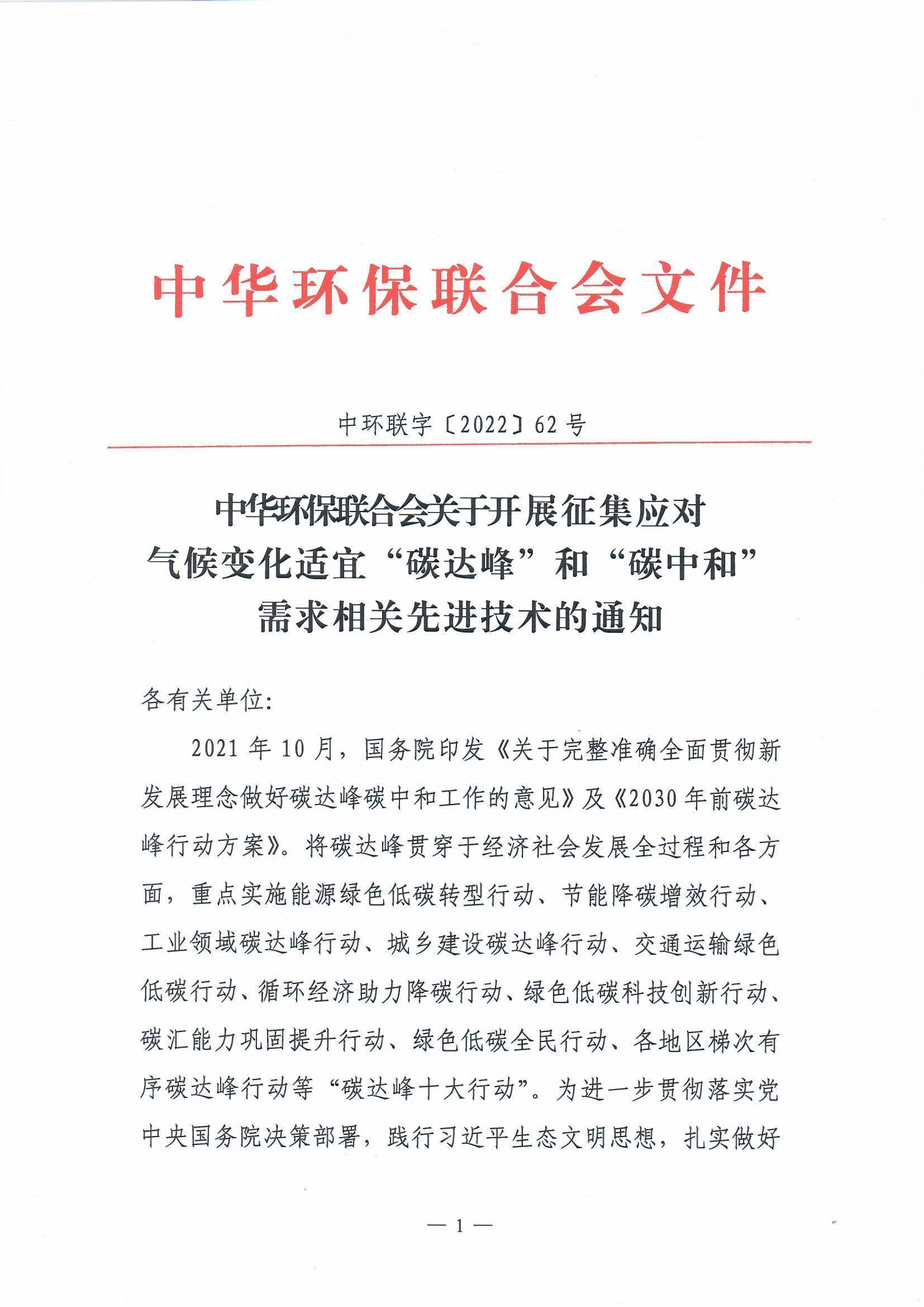 关于开展征集应对气候变化适宜“碳达峰”和“碳中和”需求相关先进技术的通知