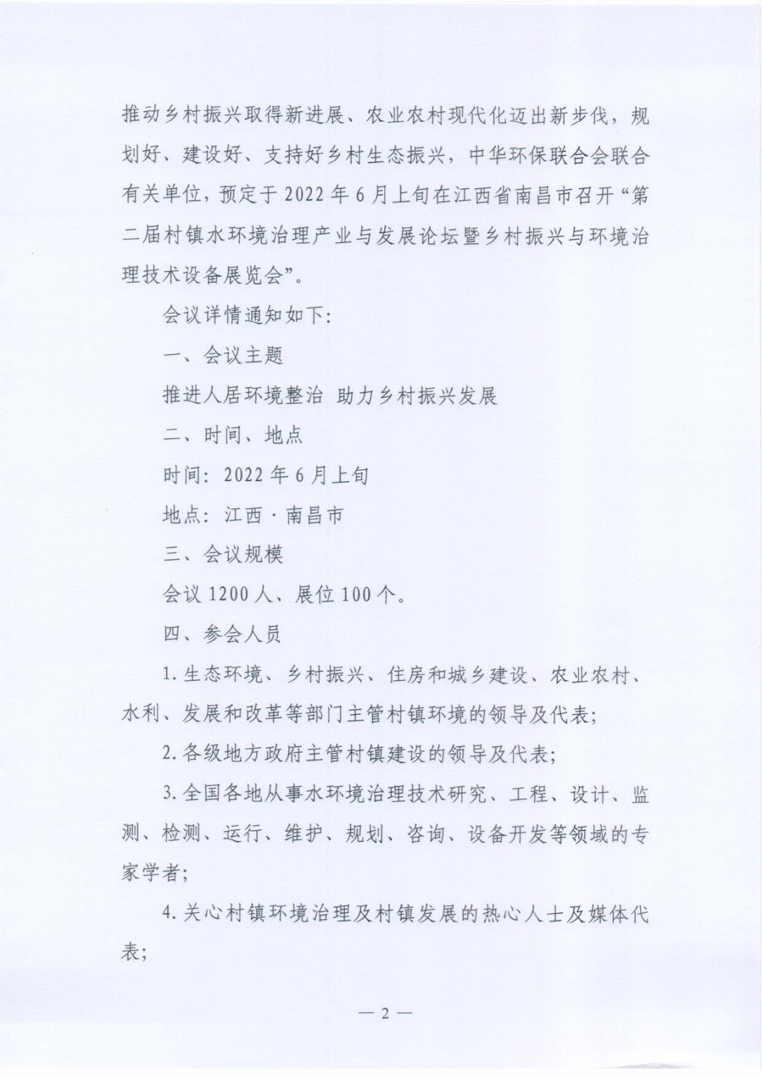 关于召开“第二届村镇水环境治理产业与发展论坛暨乡村振兴与环境治理技术设备展览会”的预通知