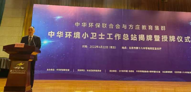 在第53个“世界地球日”到来之际,以引导广大中小学生积极践行习近平生态文明思想,从小树立“绿水青山就是金山银山”理念为宗旨的“中华环境小卫士工作总站揭牌暨授牌仪式”在京举行。“中华环境小卫士工作总站揭牌暨授牌仪式”由中华环保联合会与北京市方庄教育集群联合举办。中华环保联合会主席孙晓华、生态环境部环境与政策研究中心、北京市丰台区教育委员会、中华环境保护基金会小康幸福工程办公室以及北京市第十八中学教育集团等单位相关负责人出席了揭牌暨授牌仪式。