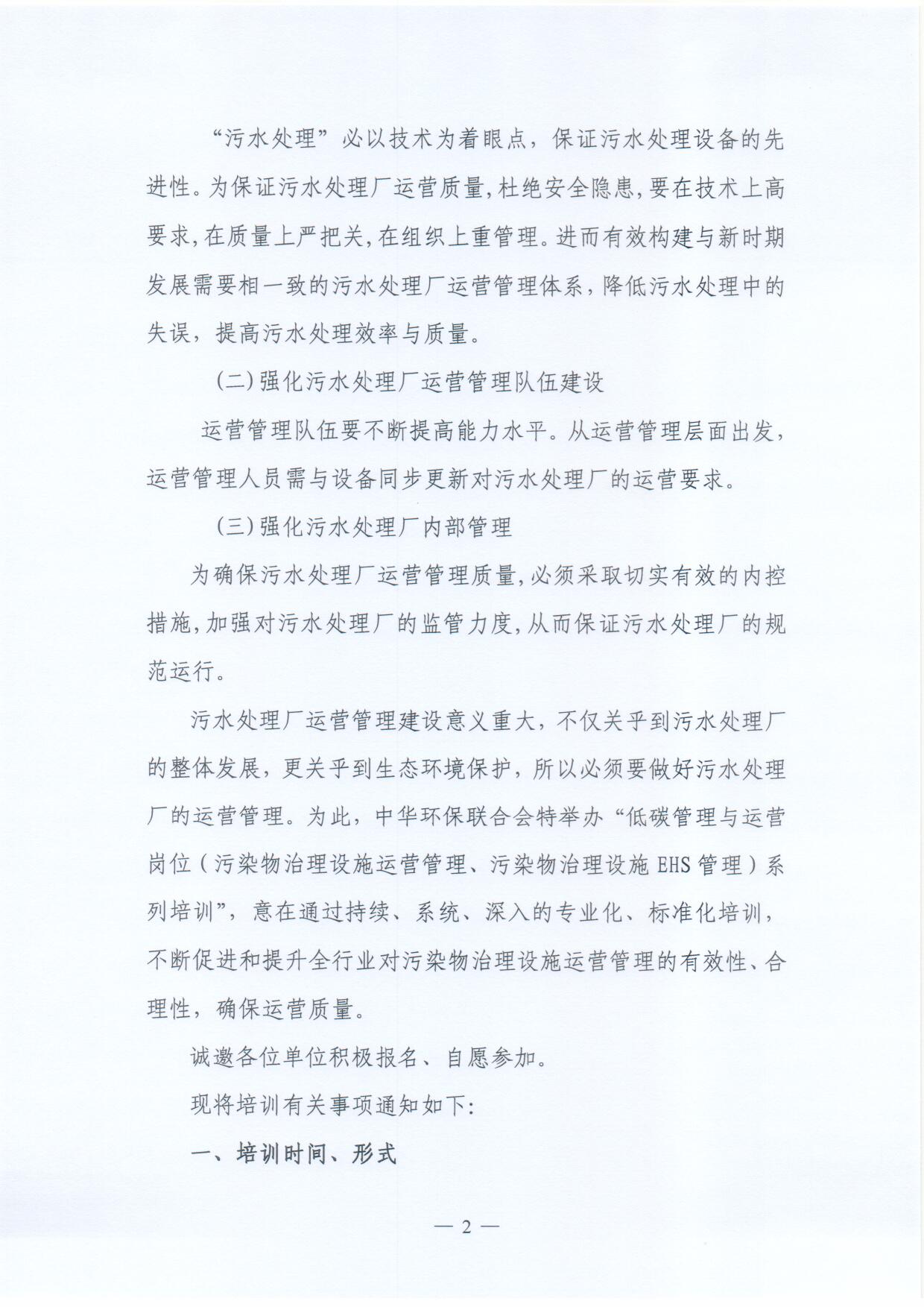 关于举办首次“低碳管理与运营岗位(污染物治理设施运营管理、污染物治理设施EHS管理)系列培训”的通知