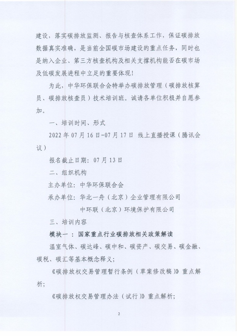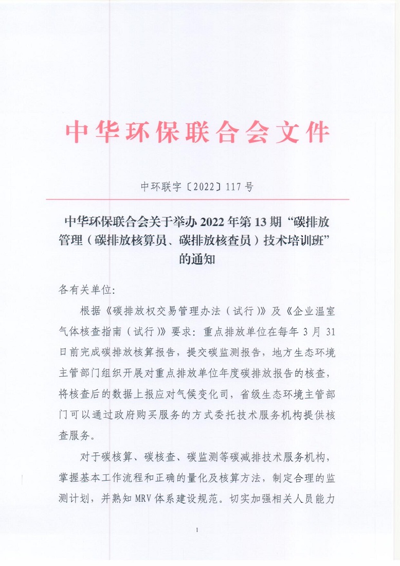 关于举办2022年第13期“碳排放管理(碳排放核算员、碳排放核查员)技术培训班”的通知