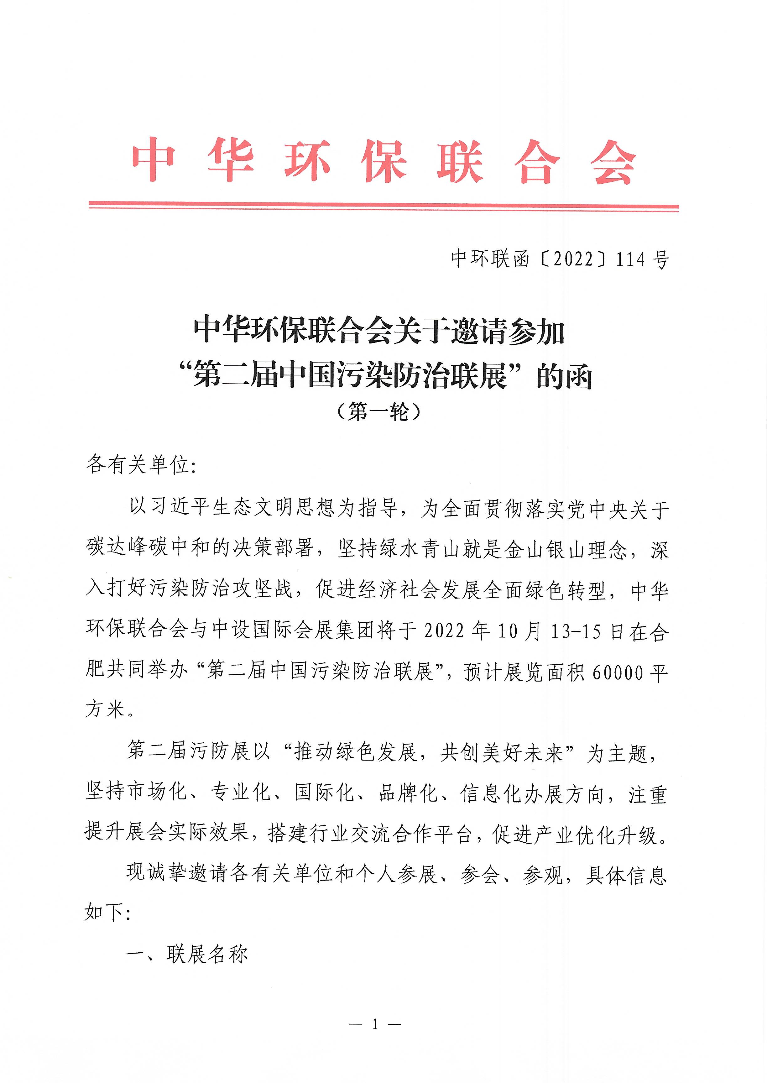 关于邀请参加“第二届中国污染防治联展”的函(第一轮)