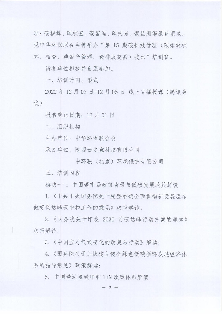 关于举办第15期“碳排放管理(碳排放核算、核查、碳资产管理、碳排放交易)技术培训班”的通知