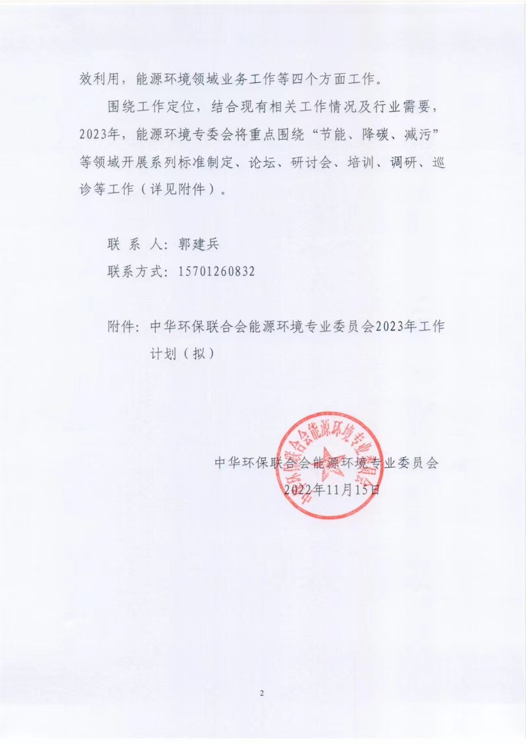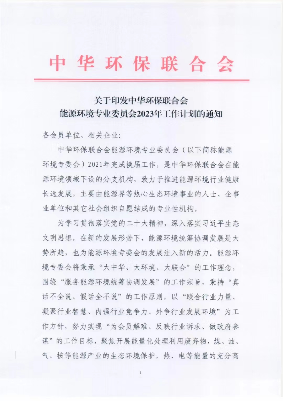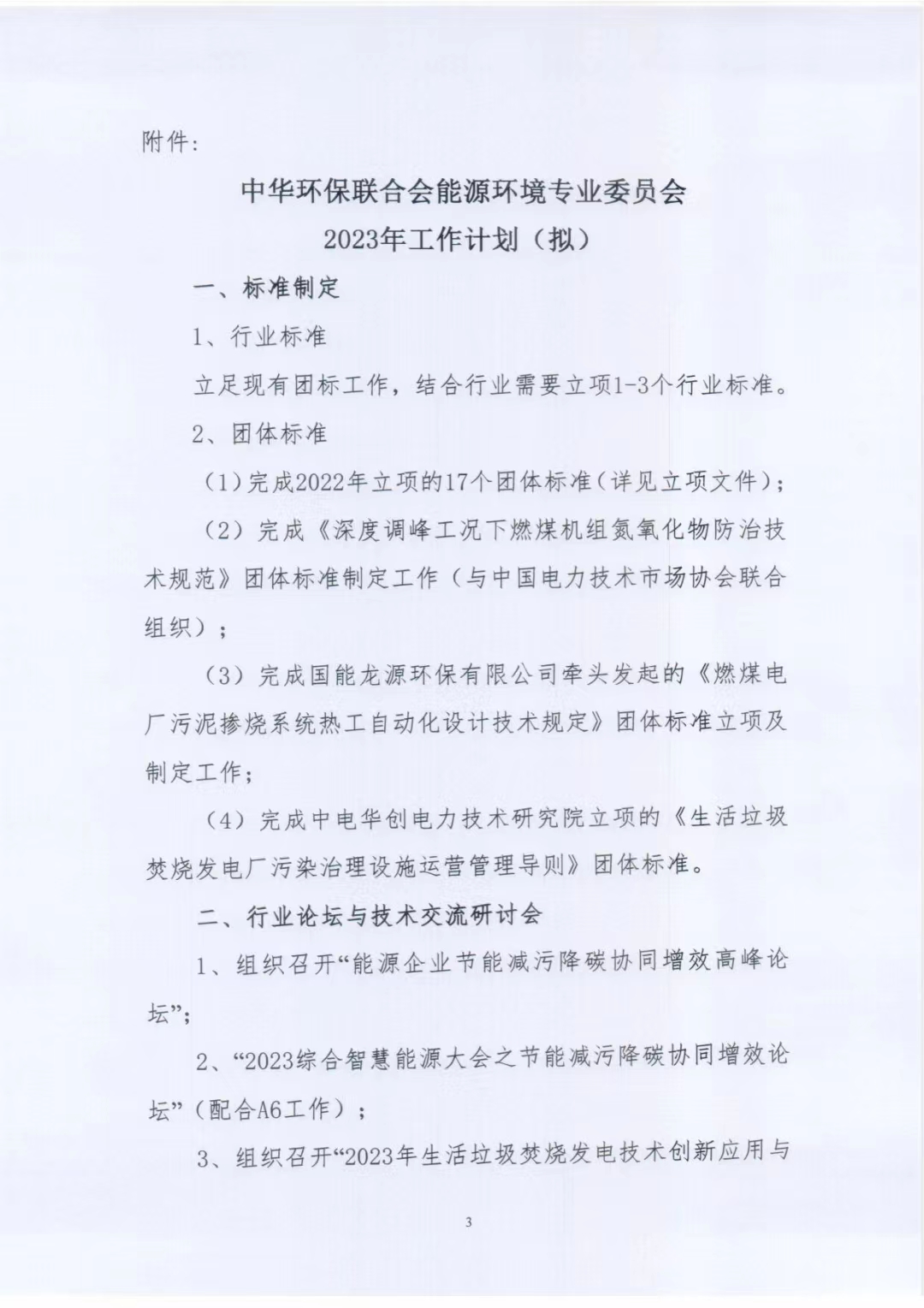关于印发中华环保联合会能源环境专业委员会2023年工作计划的通知