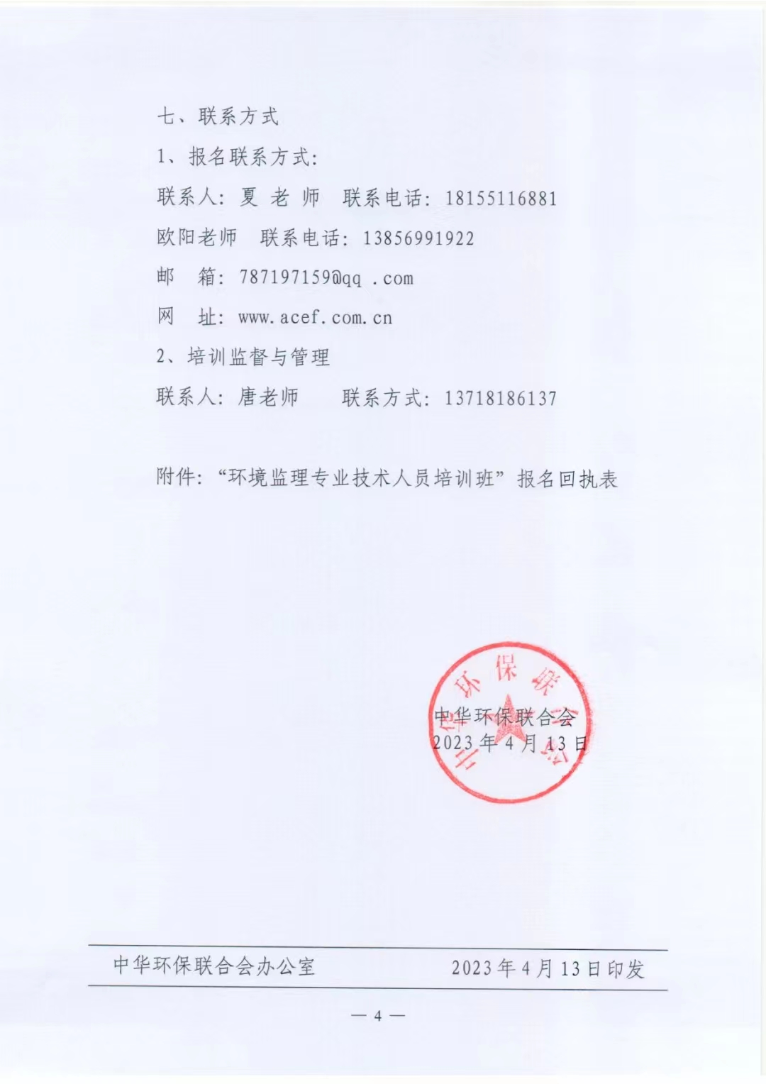 关于举办第1期“环境监理专业技术人员(总监、现场监理)培训班”的通知