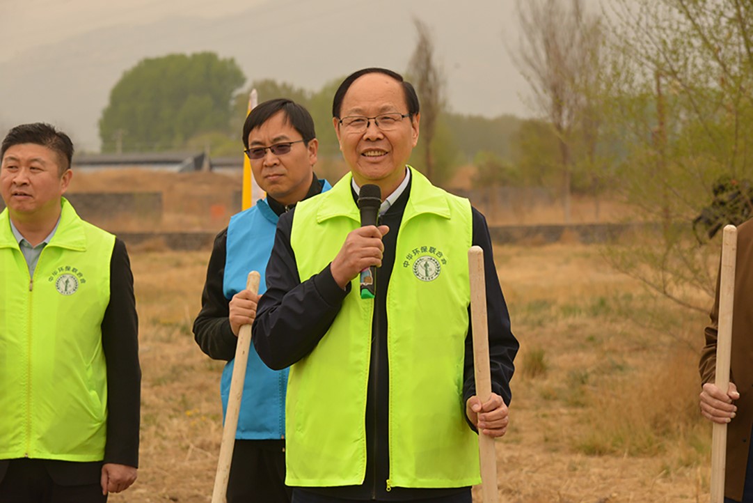 中华环保联合会副秘书长王统海致辞,他说植树造林是造福子孙万代的伟大事业,是提高我国生态承载能力和可持续发展能力的重要举措,对于应对气候变化的有着重要的意义,是关系到经济、社会持续发展乃至人类生存的大事。中华环保联合会副秘书长李瑞东说到,中华环保联合会立说立行,躬身实践,常年坚持,持之以恒,连续十多年开展公益植树活动,把公益植树作为推进环境保护全民参与的重点工作。