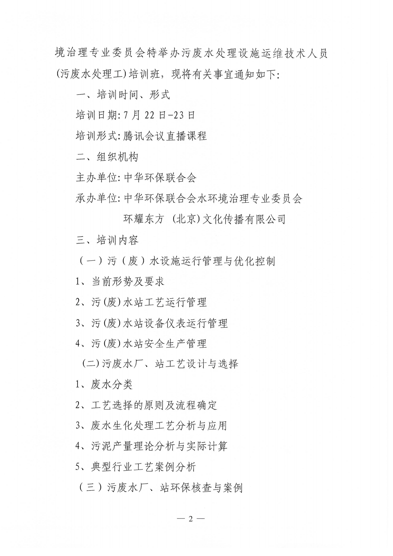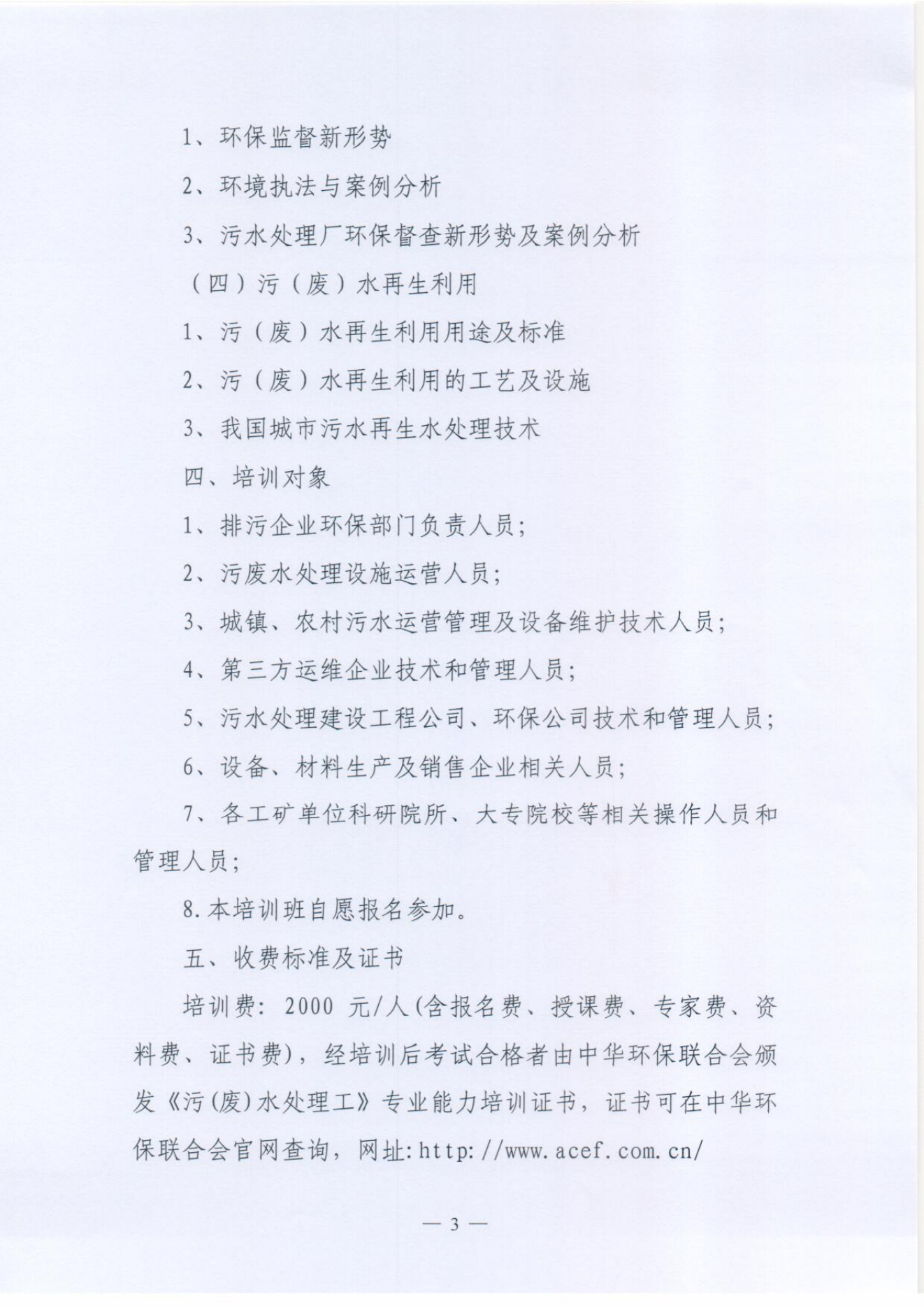 关于举办第八期污废水处理设施运行技术人员(污废水处理工)培训班的通知