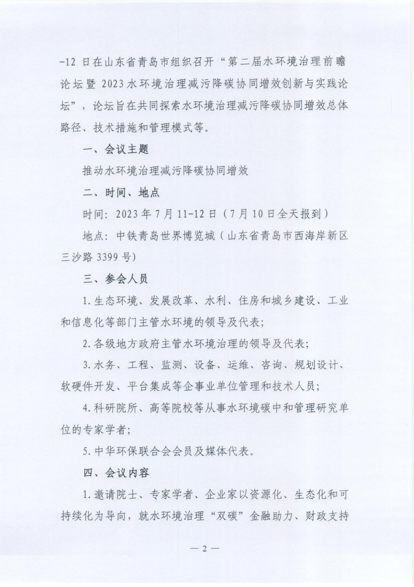 关于召开“第二届水环境治理前瞻论坛暨 2023 水环境治理减污降碳协同增效创新与实践论坛”的预通知