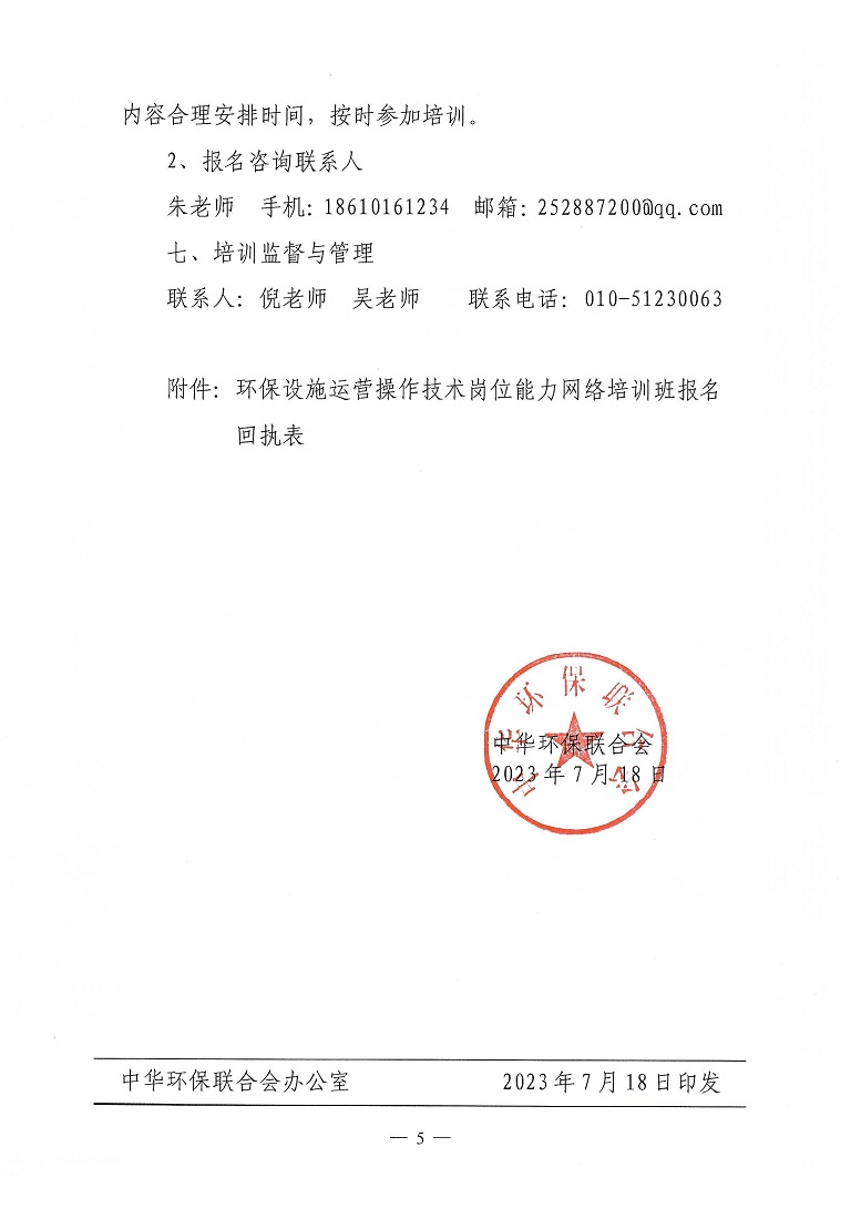 关于举办第7期“环保设施运营操作技术岗位能力”网络培训班的通知