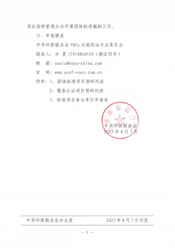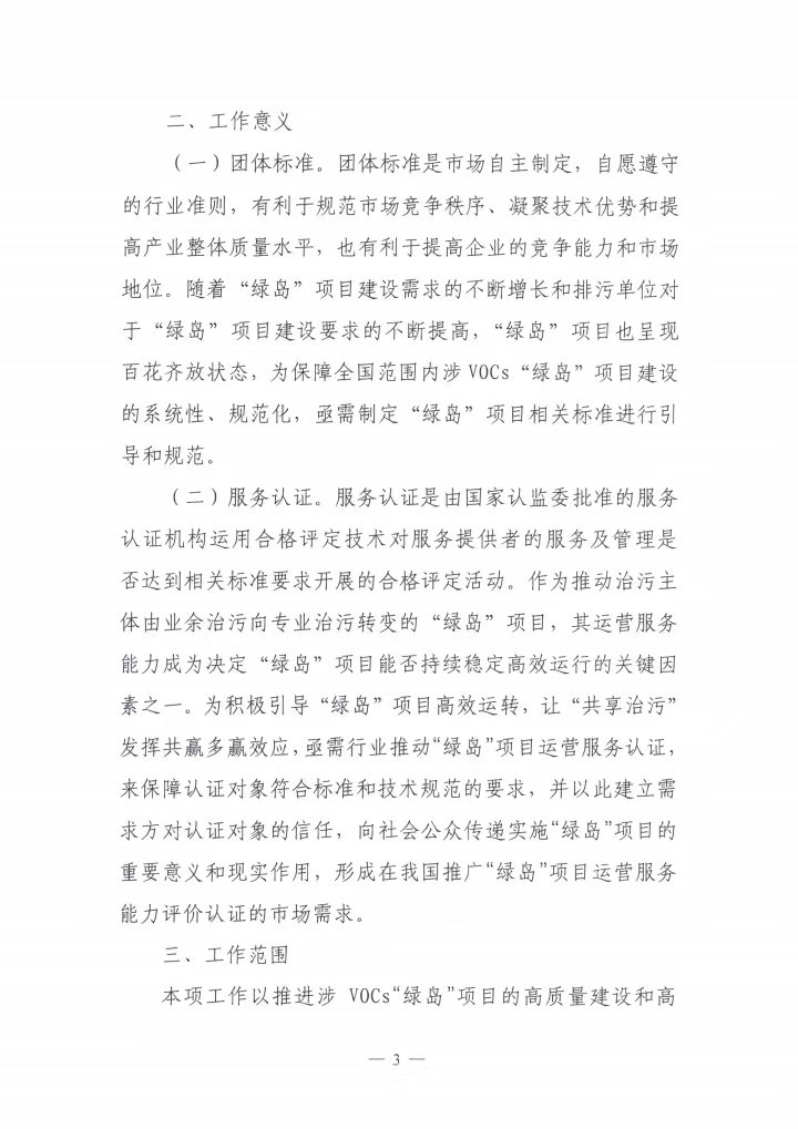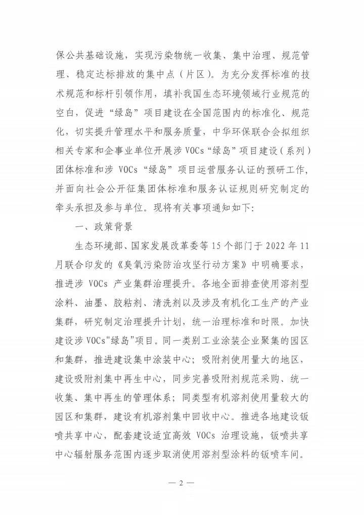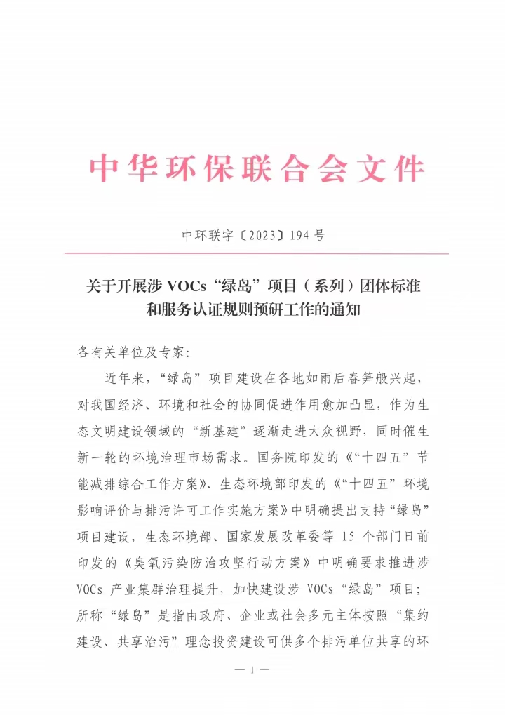 关于开展涉VOCs“绿岛”项目(系列)团体标准和服务认证规则预研工作的通知