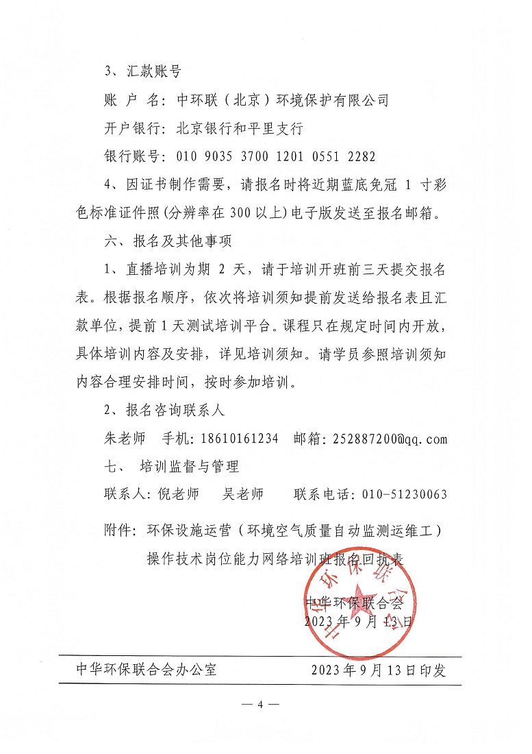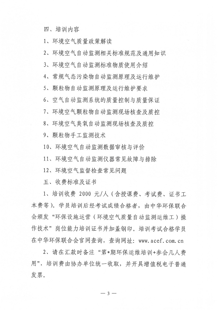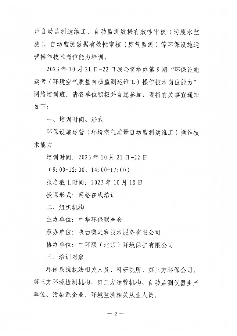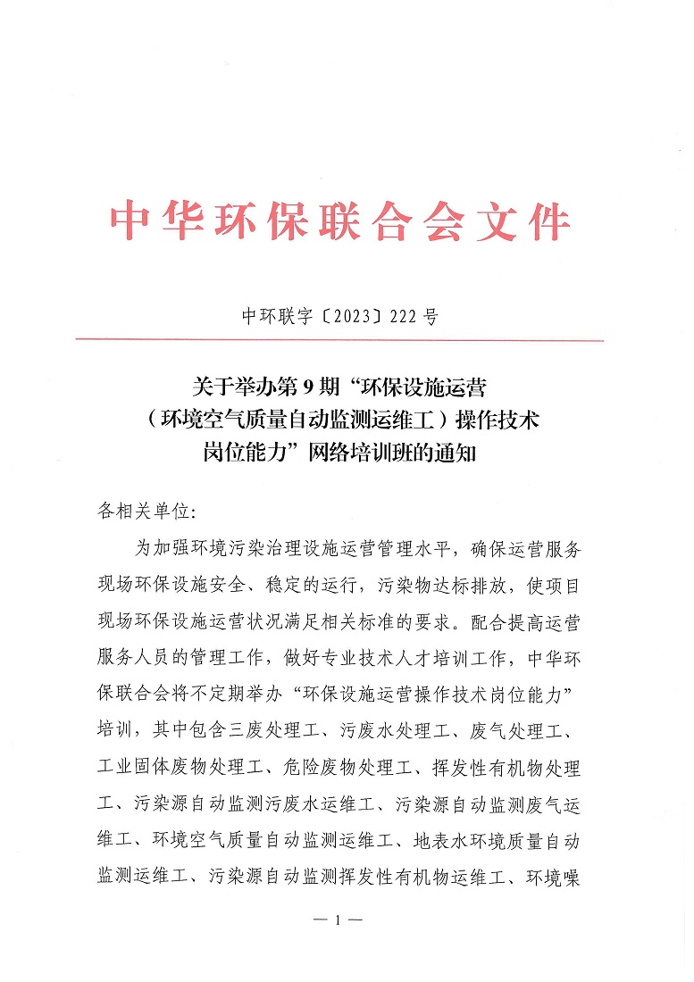 关于举办第9期“环保设施运营(环境空气质量自动监测运维工)操作技术岗位能力”网络培训班的通知