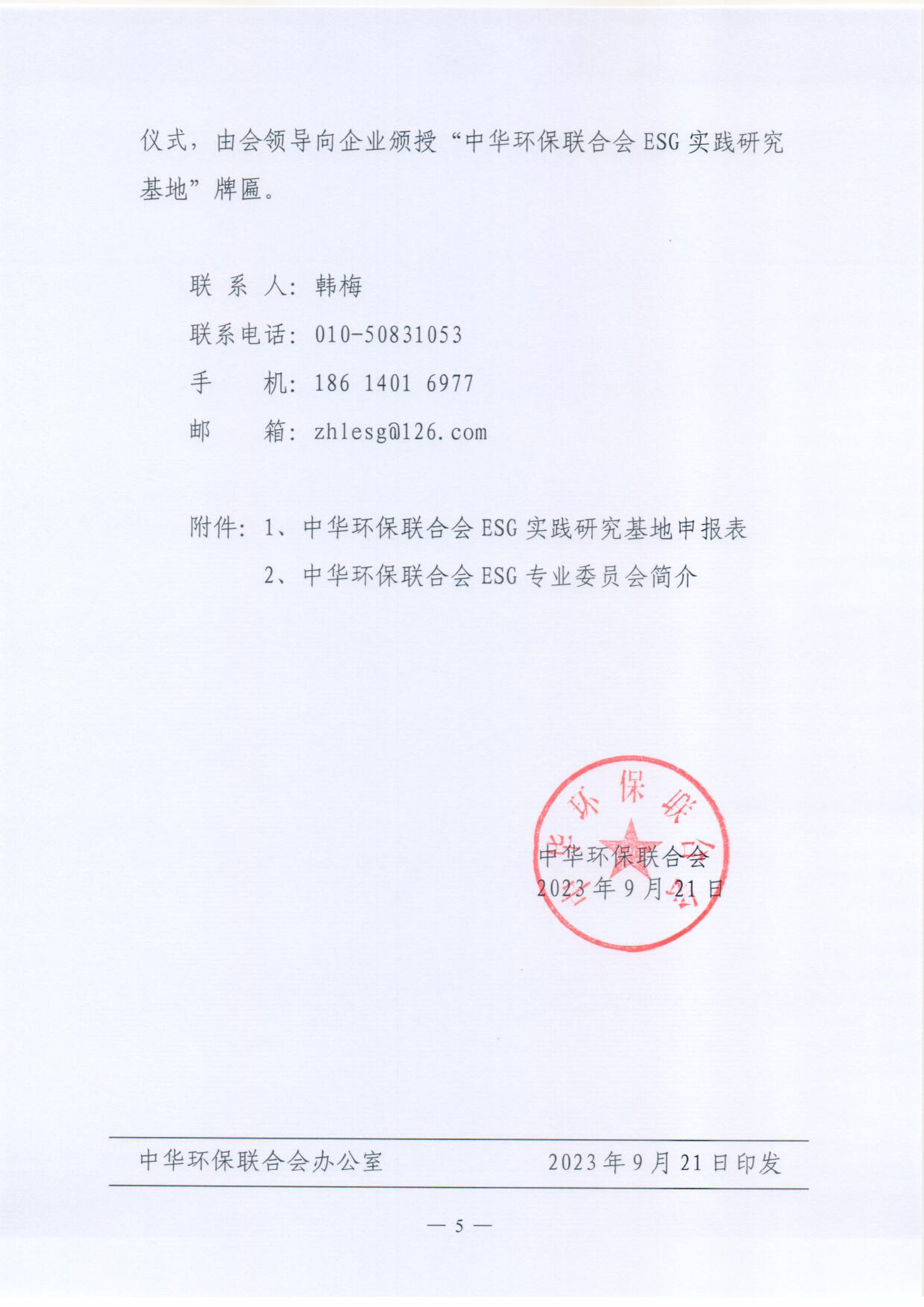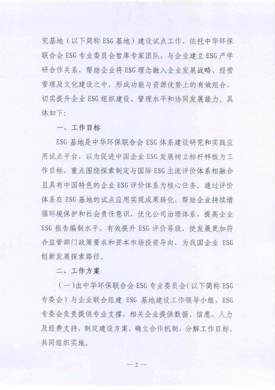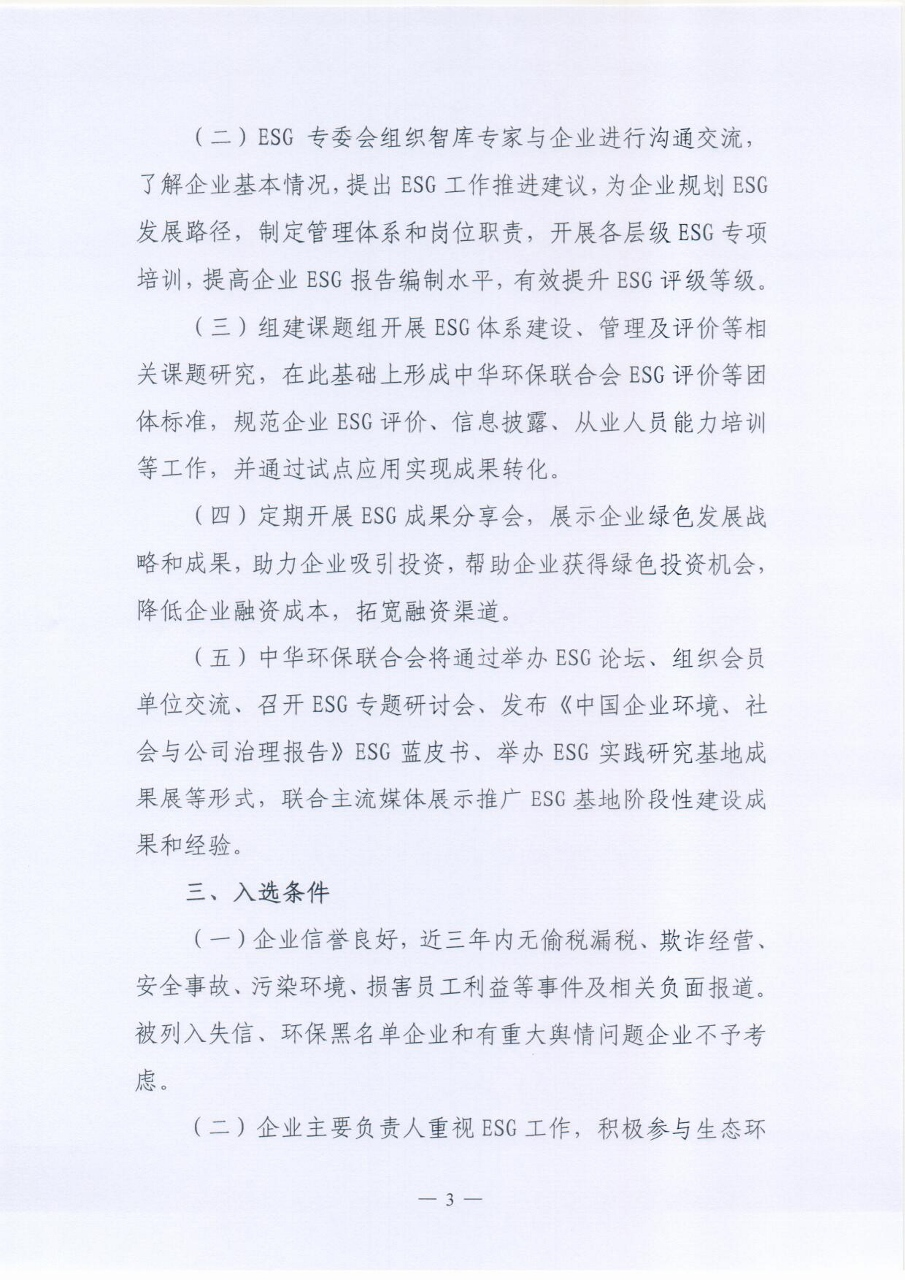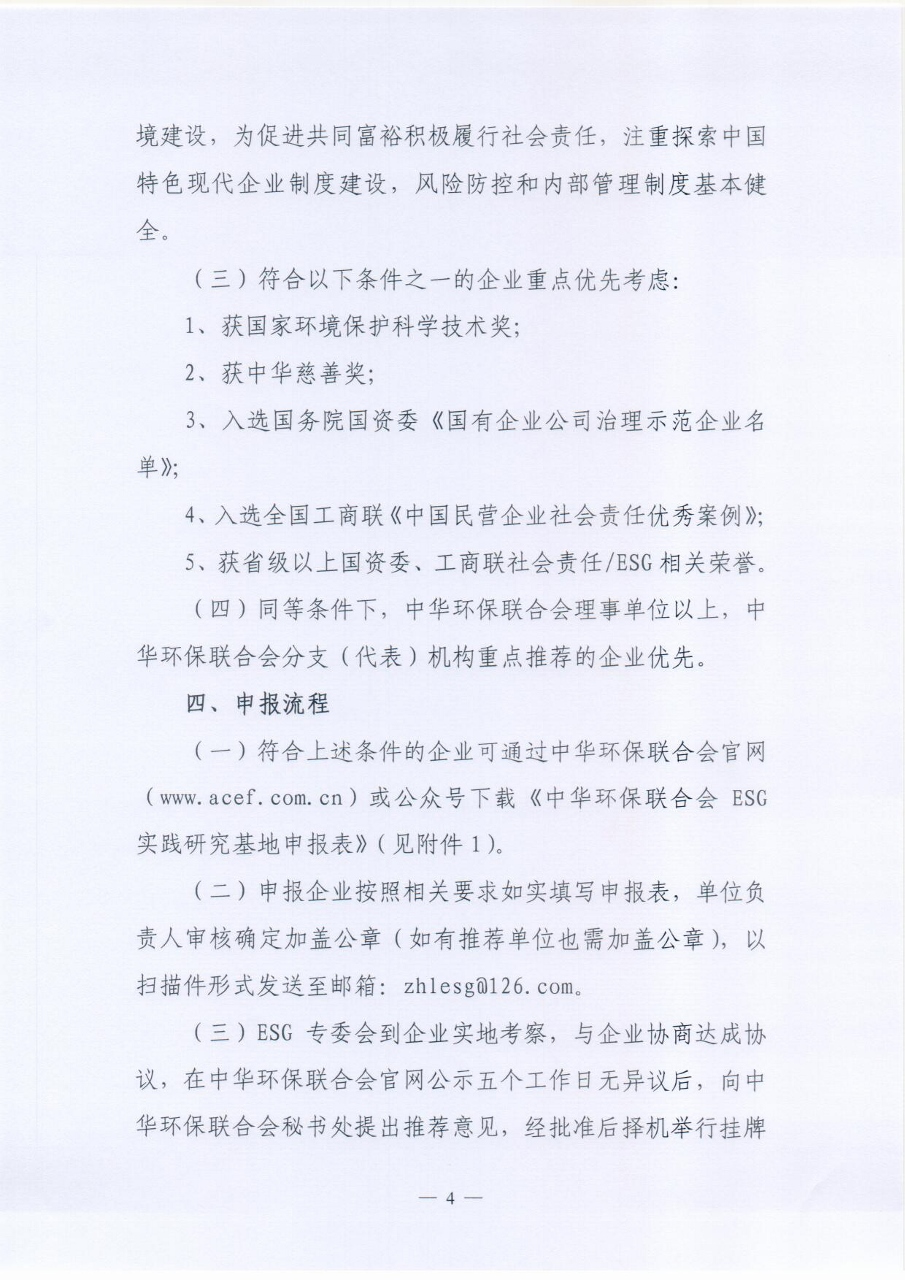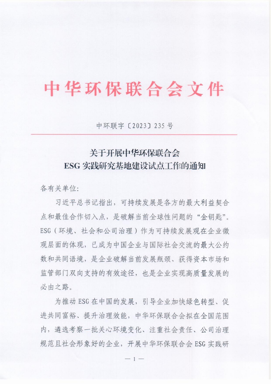 关于开展中华环保联合会ESG实践研究基地建设试点工作的通知