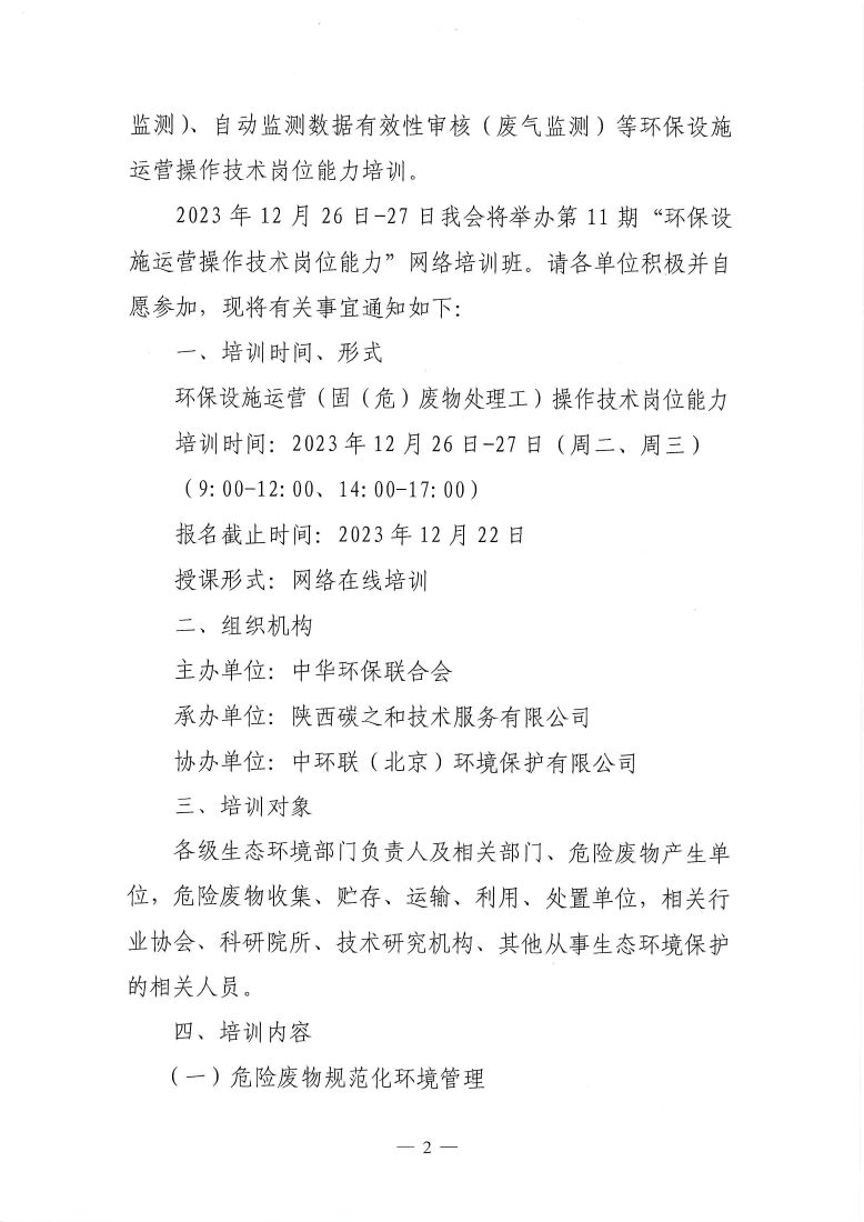 关于举办第11期“环保设施运营操作技术岗位能力”网络培训班的通知