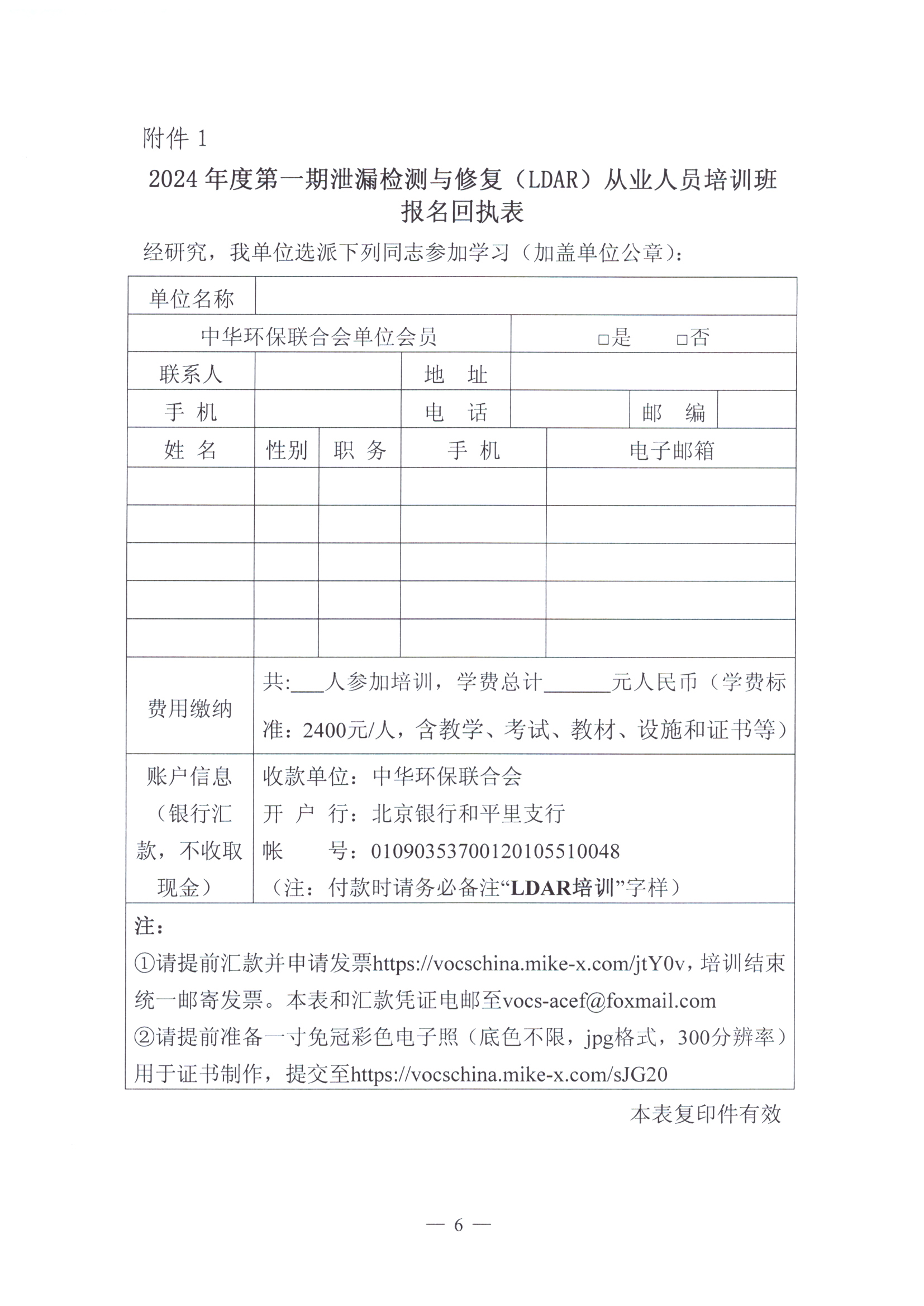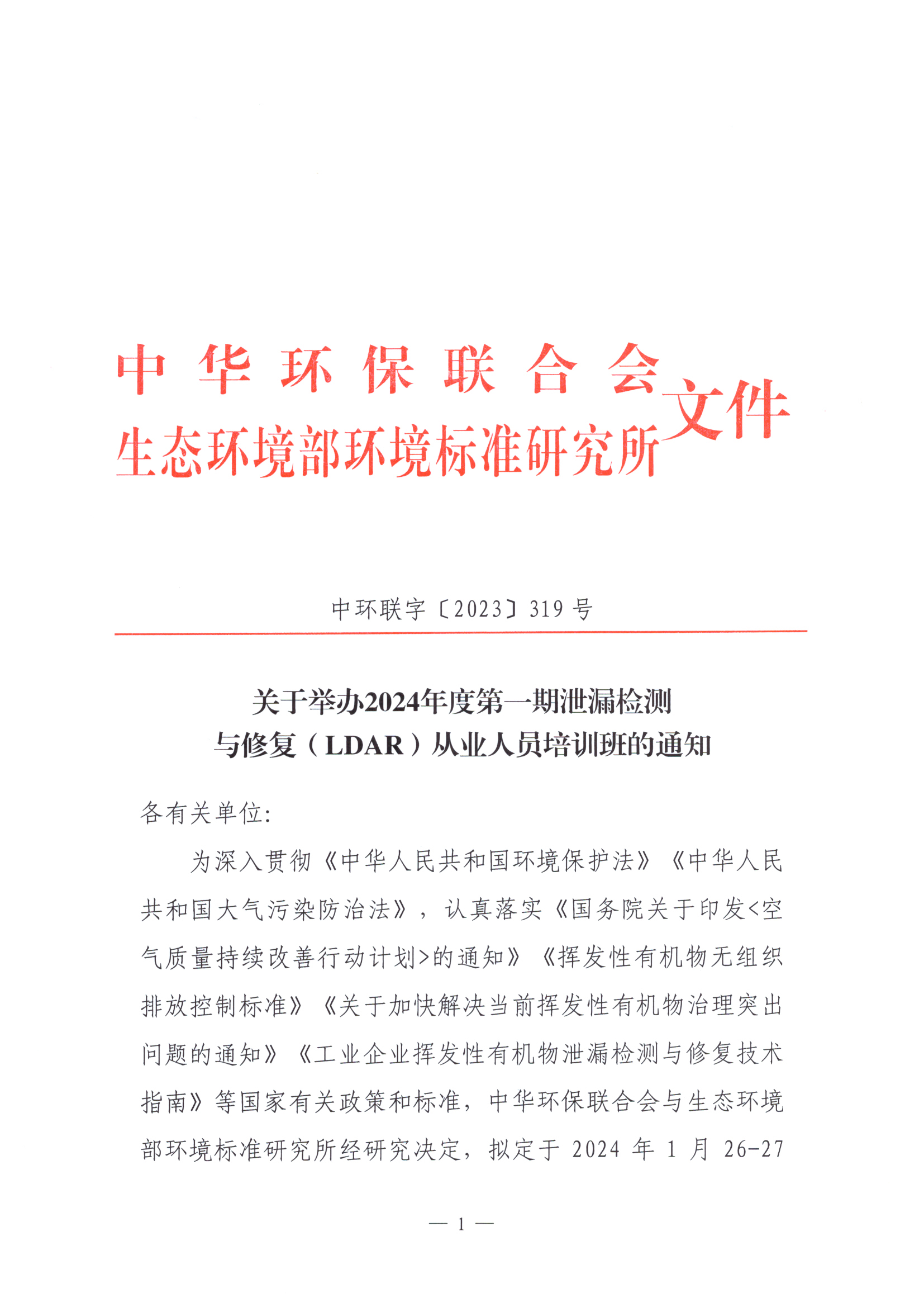 关于举办2024年度第一期泄漏检测与修复(LDAR)从业人员培训班的通知