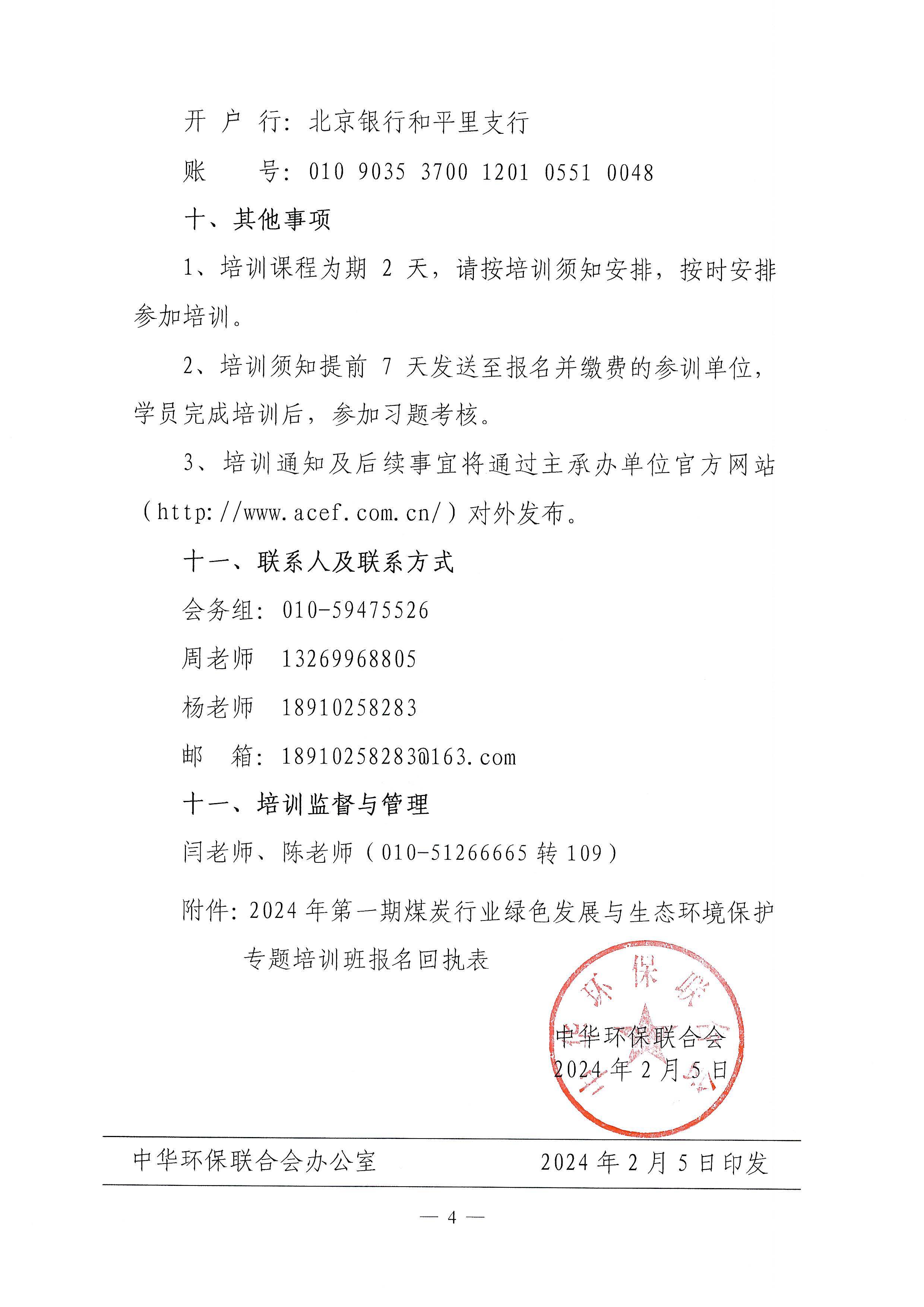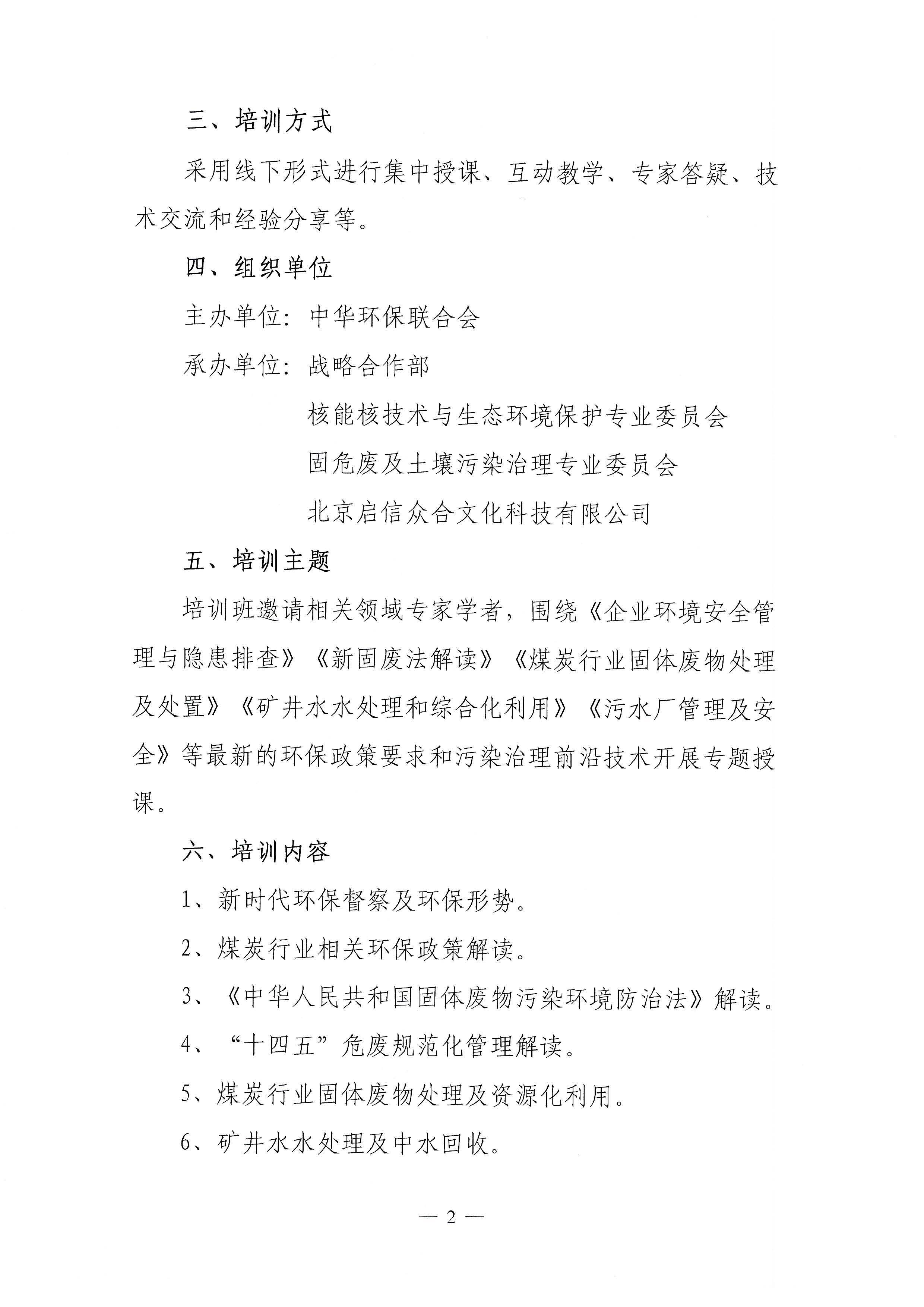 关于举办“2024年第一期煤炭行业绿色发展与生态环境保护专题培训班”通知