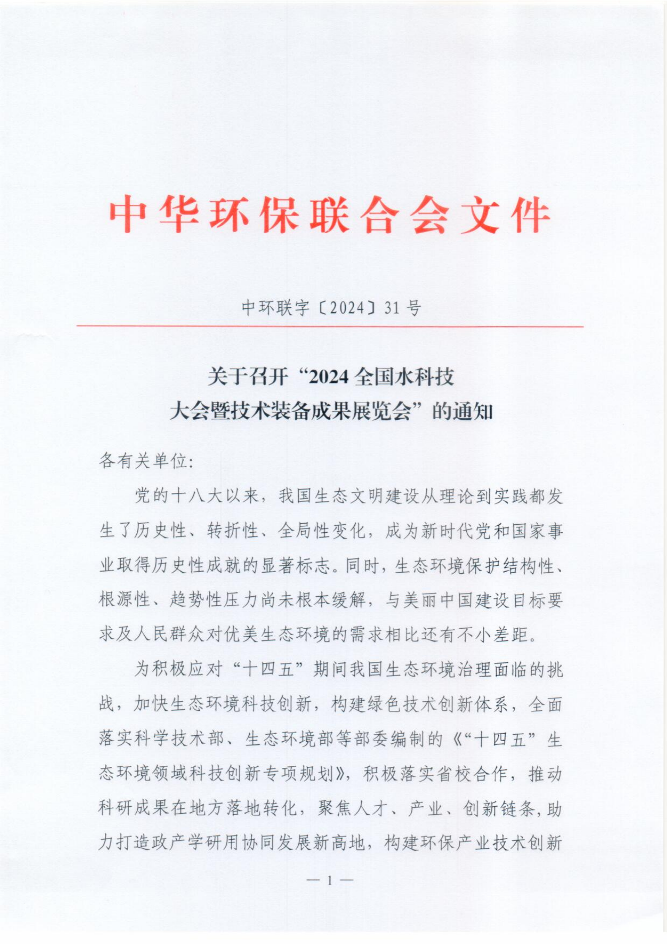关于召开“2024全国水科技大会暨技术装备成果展览会”的通知