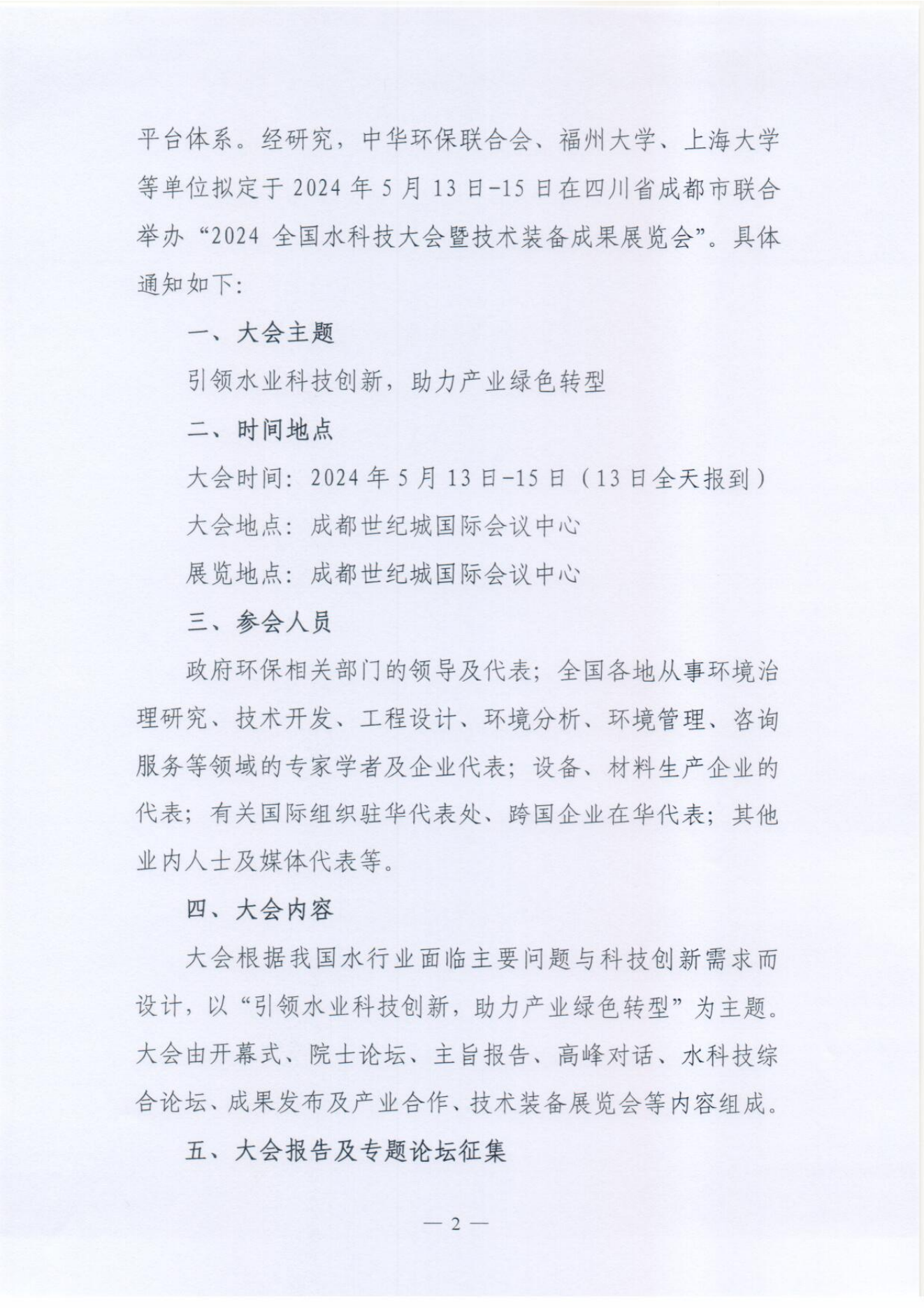 2024全国水科技大会暨技术装备成果展览会 大会方案