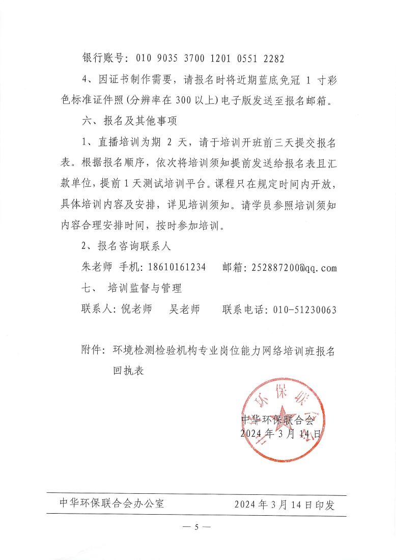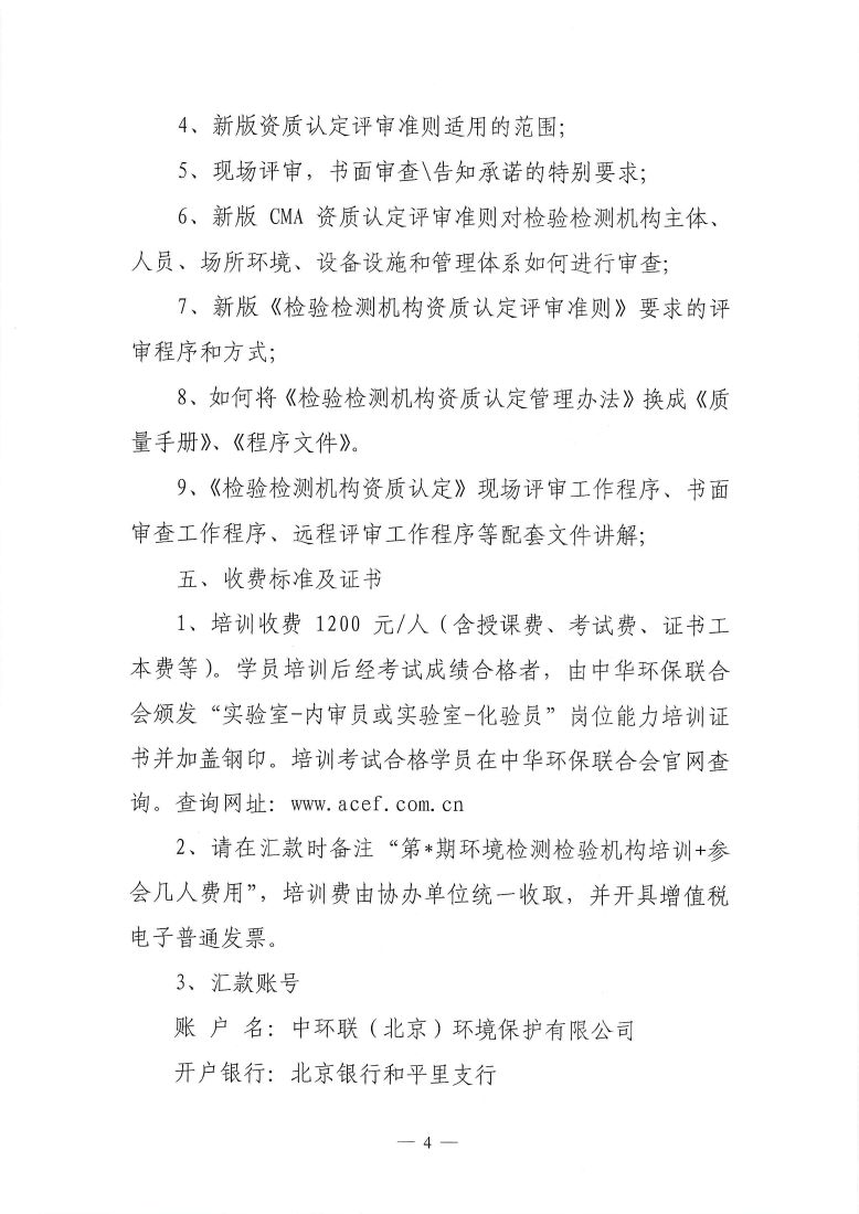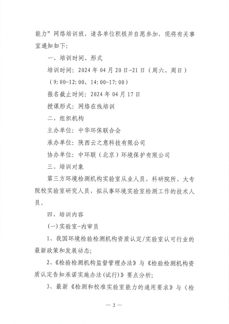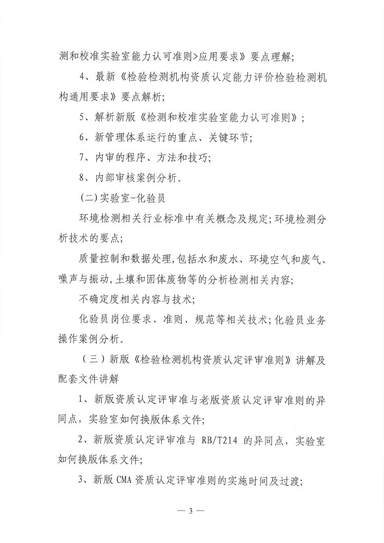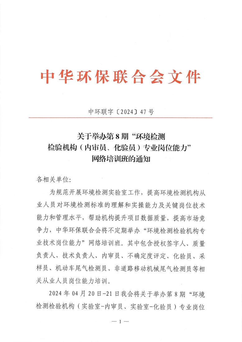 关于举办第8期“环境检测检验机构(内审员、化验员)专业岗位能力”网络培训班的通知