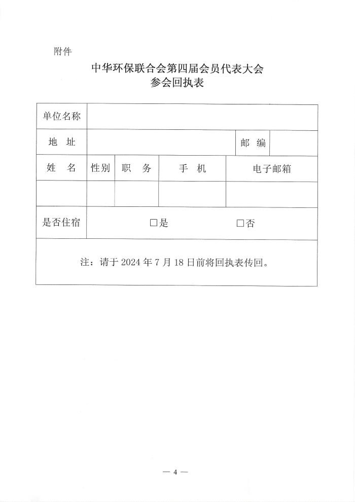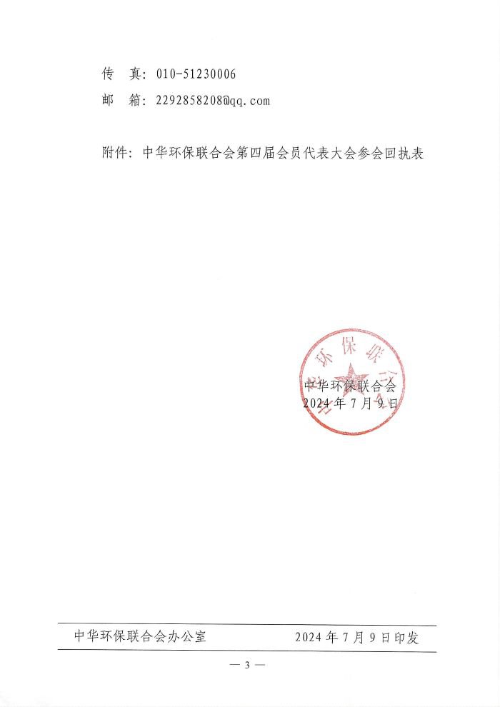 关于召开中华环保联合会第四届会员代表大会的通知