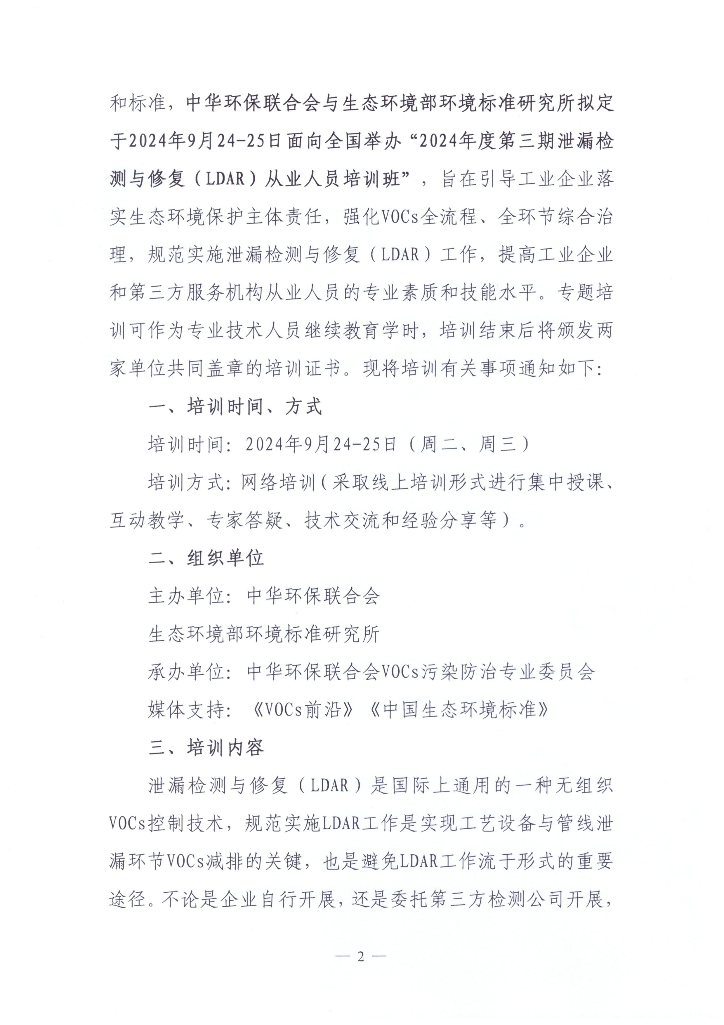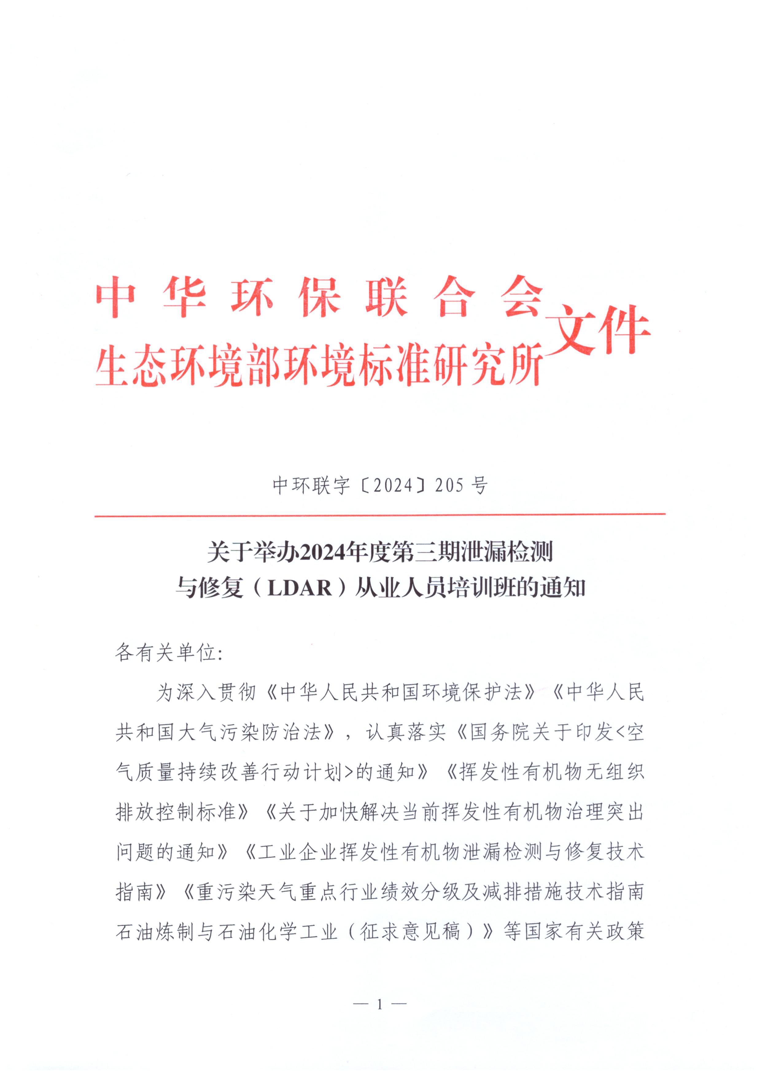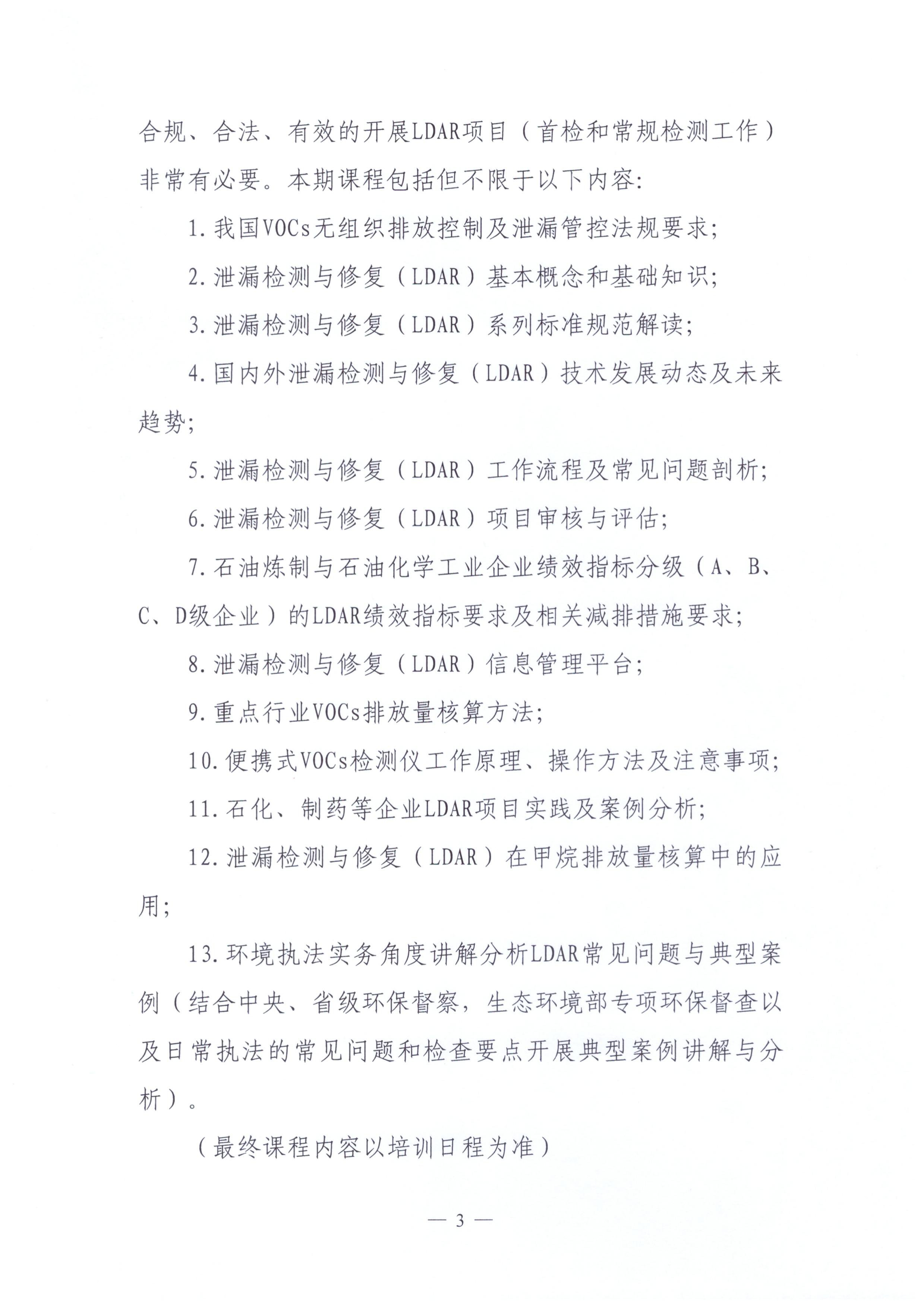 关于举办2024年度第三期泄漏检测与修复(LDAR)从业人员培训班的通知