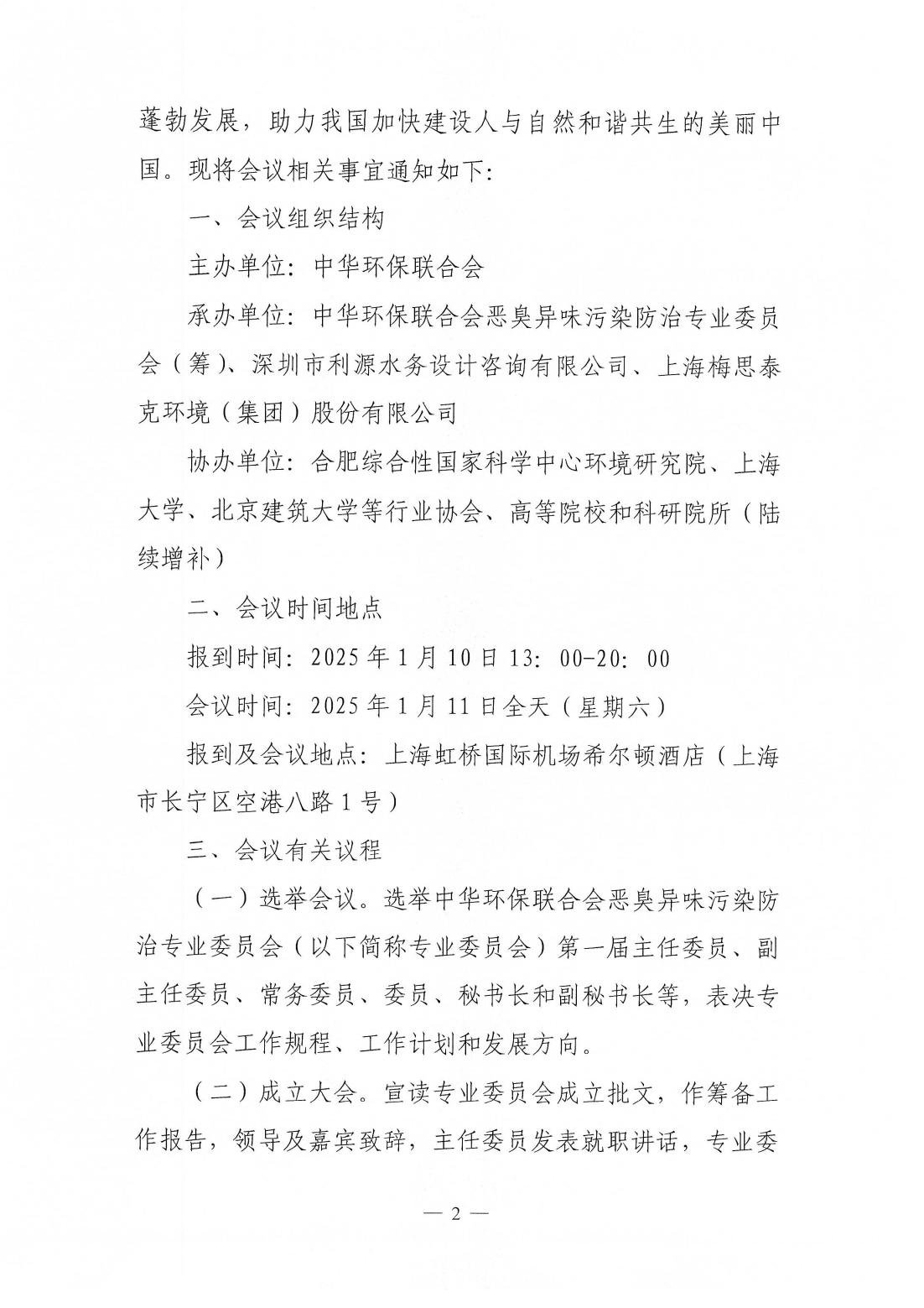 关于召开中华环保联合会恶臭异味污染防治专业委员会成立大会暨减污降碳协同创新发展论坛的通知