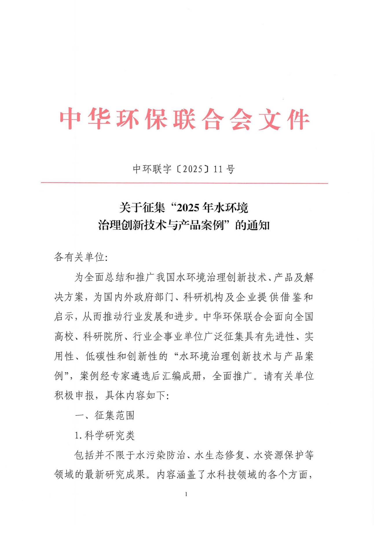 关于征集“2025年环境治理创新技术与产品案例”的通知