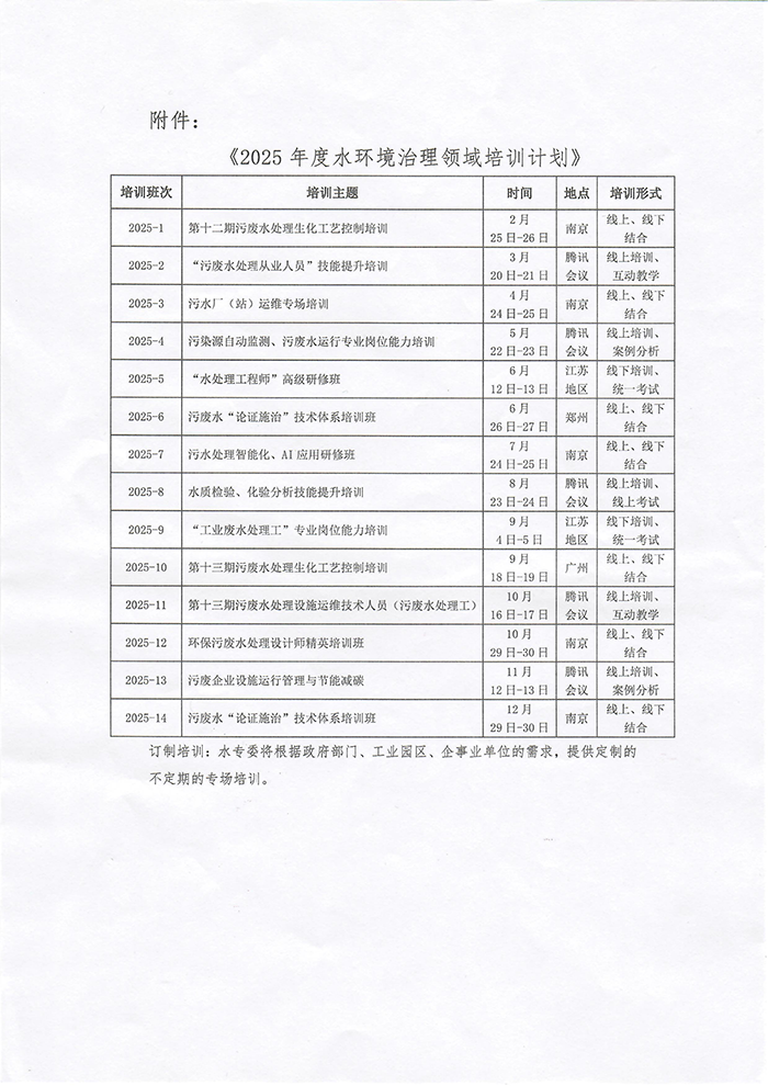 关于发布中华环保联合会水环境治理专业委员会2025年度水环境治理领域培训计划》的通知