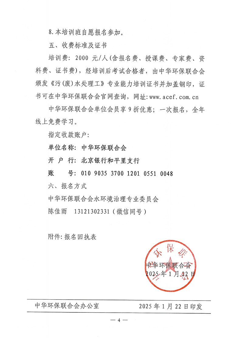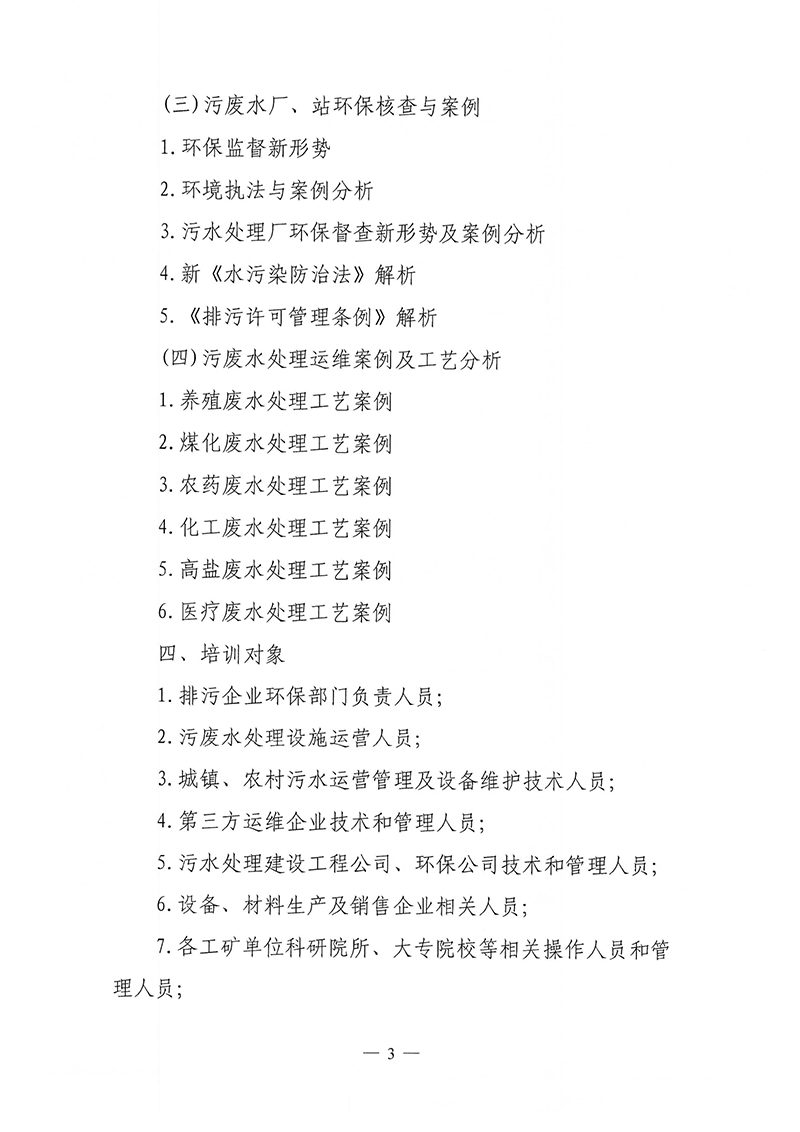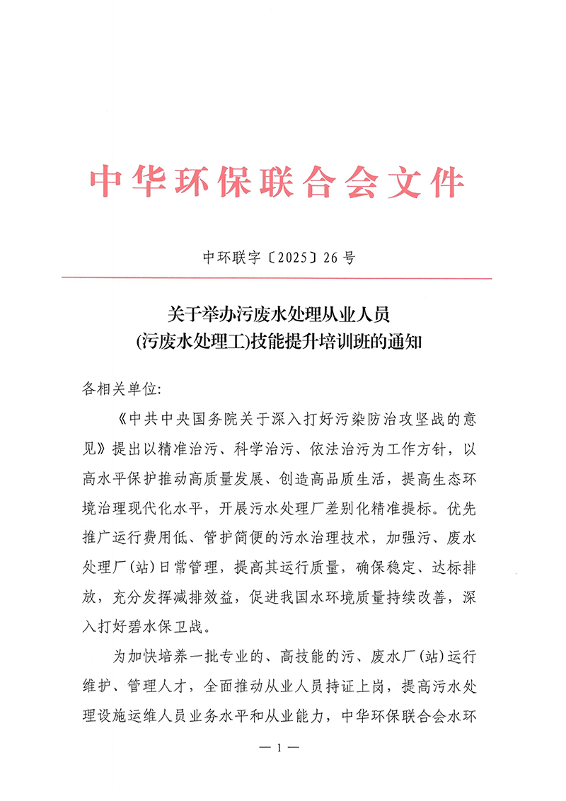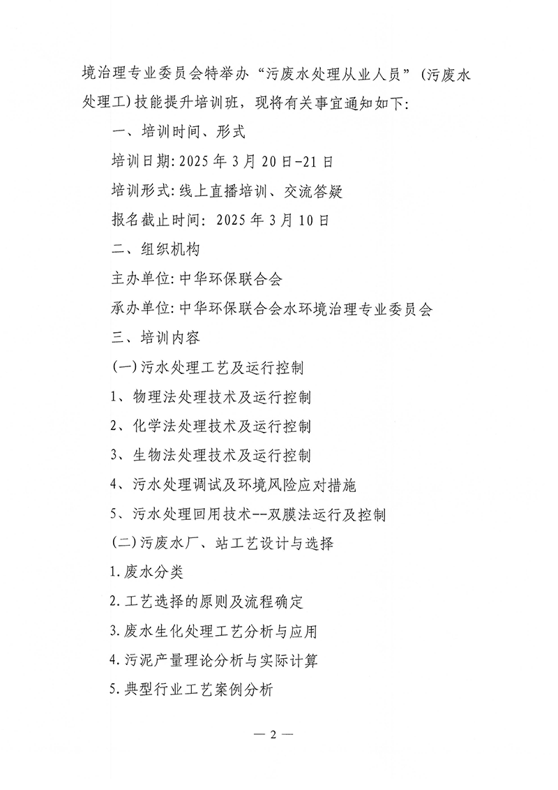 关于举办污废水处理从业人员(污废水处理工)技能提升培训班的通知