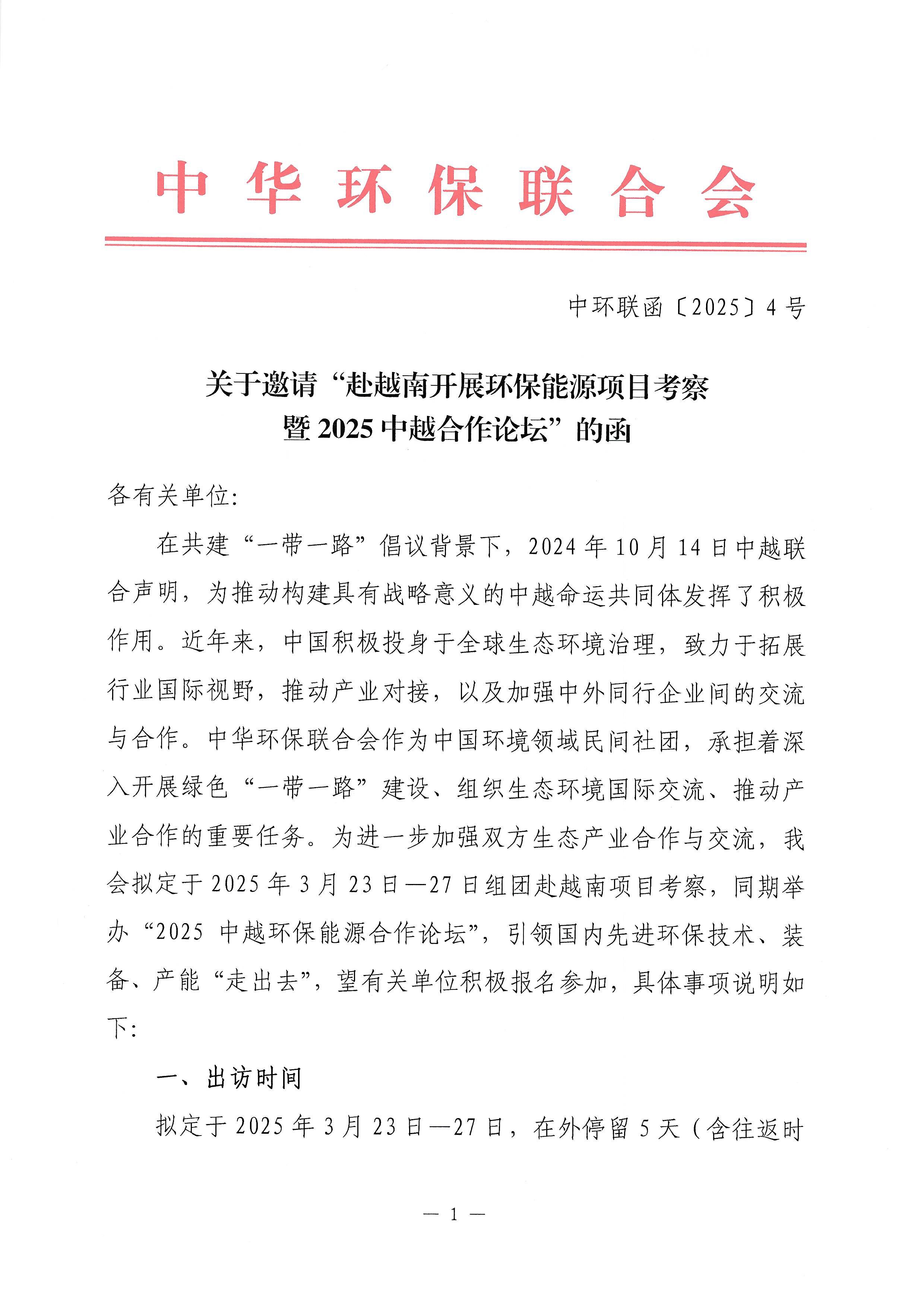 中华环保联合会“一带一路”绿色品牌出海计划——第三站:赴越南开展环保能源项目考察暨2025中越合作论坛