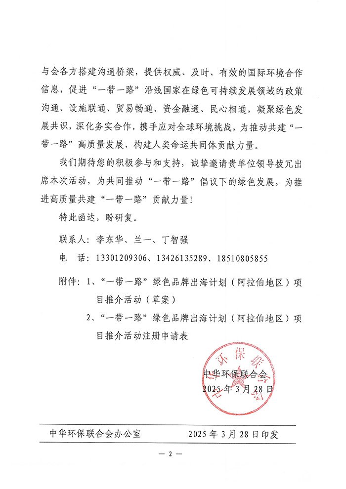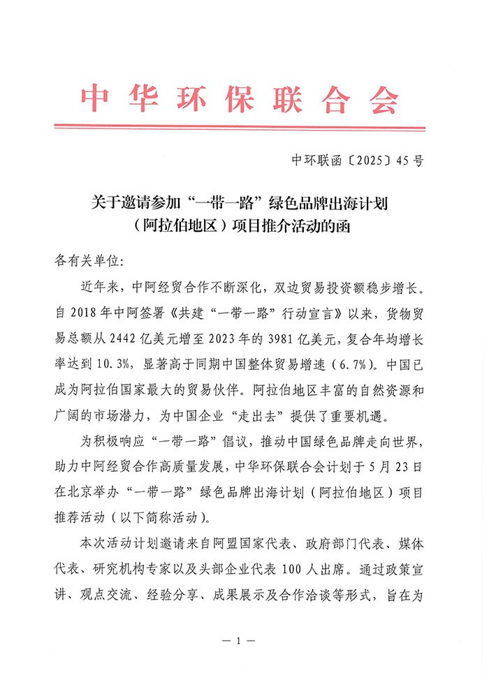 关于邀请参加“一带一路”绿色品牌出海计划(阿拉伯地区)项目推介活动的函