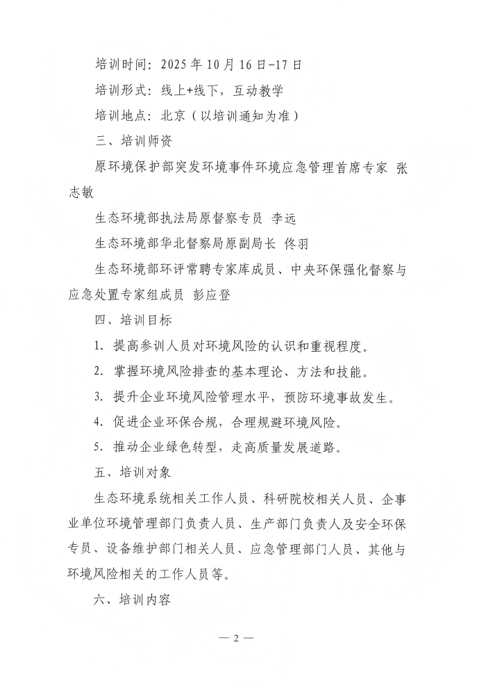 关于开展“环境风险隐患排查及处置”专题培训班的通知