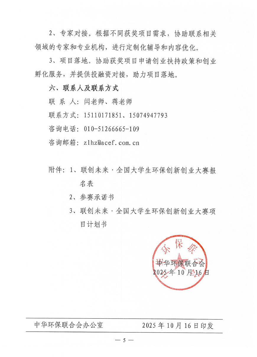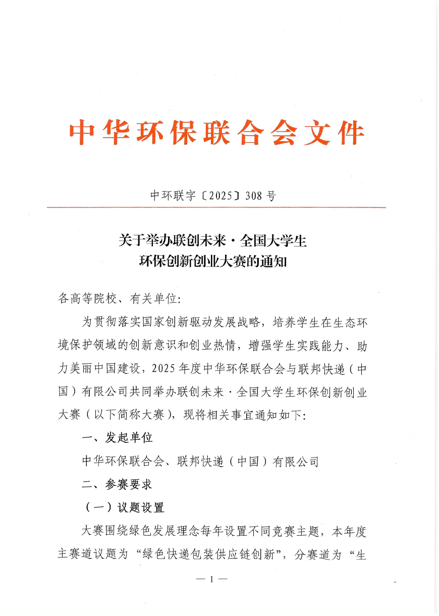 关于举办联创未来·全国大学生环保创新创业大赛的通知