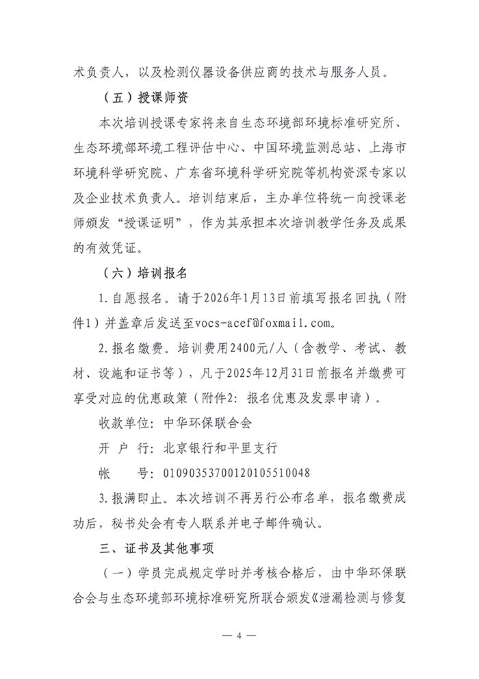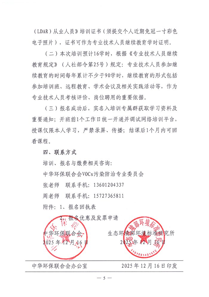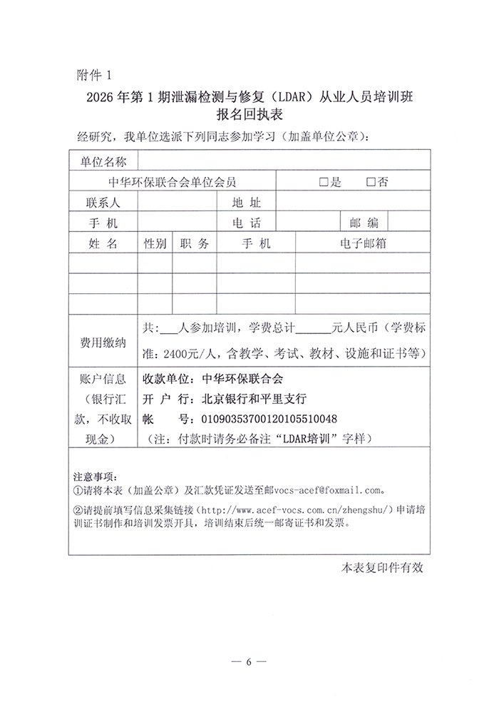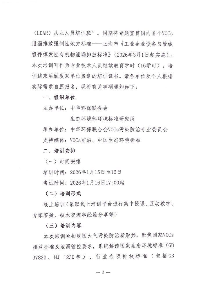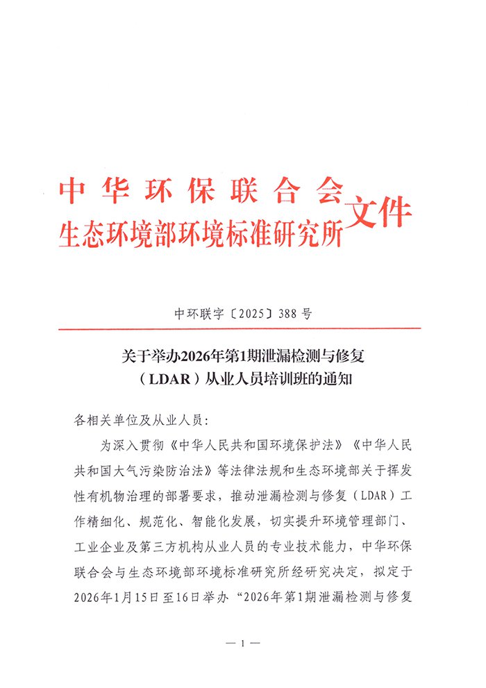 关于举办2026年第1期泄漏检测与修复(LDAR)从业人员培训班的通知
